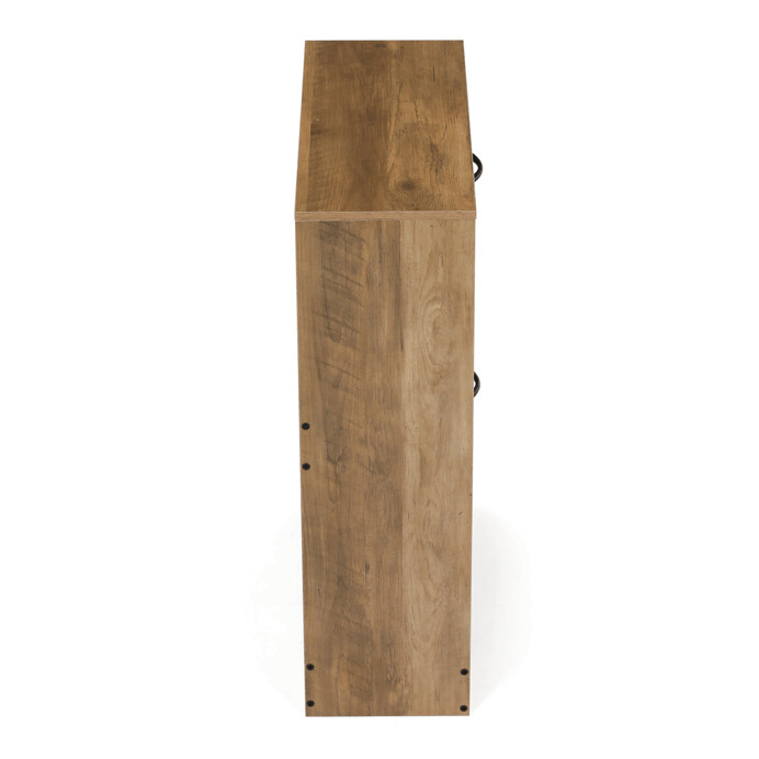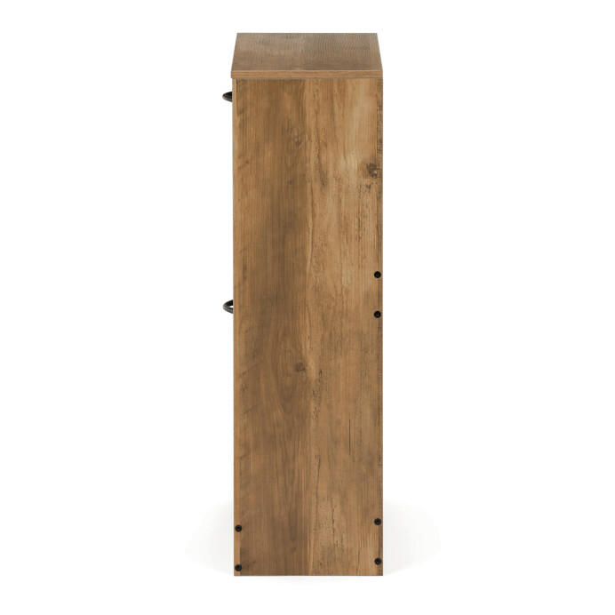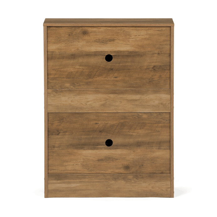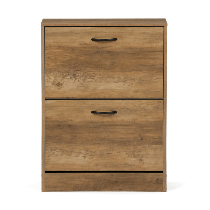 Botník s dvoma priehradkami v dekore jilm je vyrobený z MDF dosiek v hnedom odtieni, ktorý prináša do priestoru príjemnú prírodnú atmosféru. Praktické výklopné dvere umožňujú jednoduchý prístup k uskladnenej obuvi a zároveň šetria miesto v predsieni. Pevné úchytky zabezpečujú pohodlnú manipuláciu, zatiaľ čo kompaktné rozmery botníka umožňujú jeho umiestnenie aj do menších priestorov. Vnútorný priestor je rozdelený na dve samostatné sekcie, ktoré pomáhajú udržať poriadok a prehľadnosť. Celkové prevedenie je navrhnuté pre dlhú životnosť a jednoduchú údržbu.