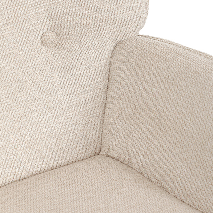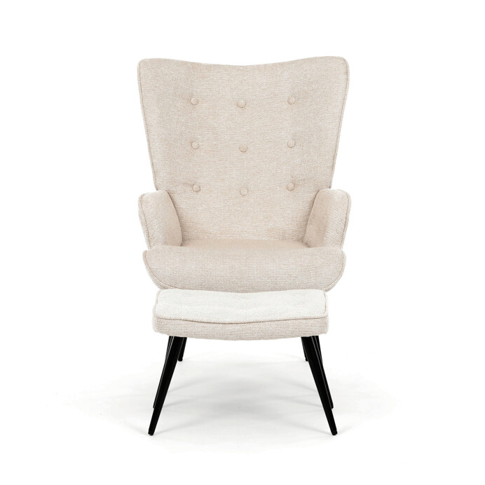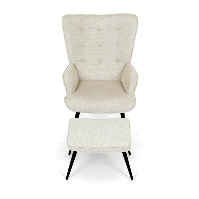 Relaxačné kreslo s podnožkou v béžovom odtieni je potiahnuté vodoodpudivou látkou, ktorá uľahčuje údržbu a zvyšuje odolnosť proti poliatiu. Čalúnenie je príjemné na dotyk a vďaka prémiovej tkanine ponúka dlhodobý komfort aj pri dlhšom sedení. Kreslo má pevné čierne kovové nohy, ktoré zabezpečujú stabilitu a bezpečnosť. Súčasťou je aj bonusový taburet so zhodným poťahom a dizajnom, ktorý umožňuje pohodlné oprenie nôh a dopĺňa relaxačný zážitok. Ergonomicky tvarované podrúčky podporujú správnu polohu paží a prispievajú k celkovému pohodliu. Taburet je o šírke 48cm, hĺbke 38cm a výške 36cm.