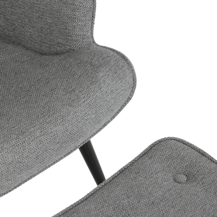 Relaxačné kreslo s podnožkou v sivej farbe je potiahnuté vodoodpudivou prémiovou látkou, ktorá uľahčuje údržbu a zvyšuje odolnosť proti poliatiu. Pevná kovová podnož v čiernom prevedení zabezpečuje stabilitu a dlhú životnosť. Kreslo má pohodlné čalúnené podrúčky a ergonomicky tvarované operadlo s decentným prešitím, ktoré podporuje relaxáciu a komfort pri sedení. Súčasťou je aj samostatný taburet so zhodným materiálom a dizajnom, ktorý umožňuje pohodlné opretie nôh. Tento set je vhodný na oddych v obývačke alebo pracovni, kde oceníte kombináciu funkčnosti a moderného vzhľadu. Taburet je o šírke 48cm, hĺbke 38cm a výške 36cm.