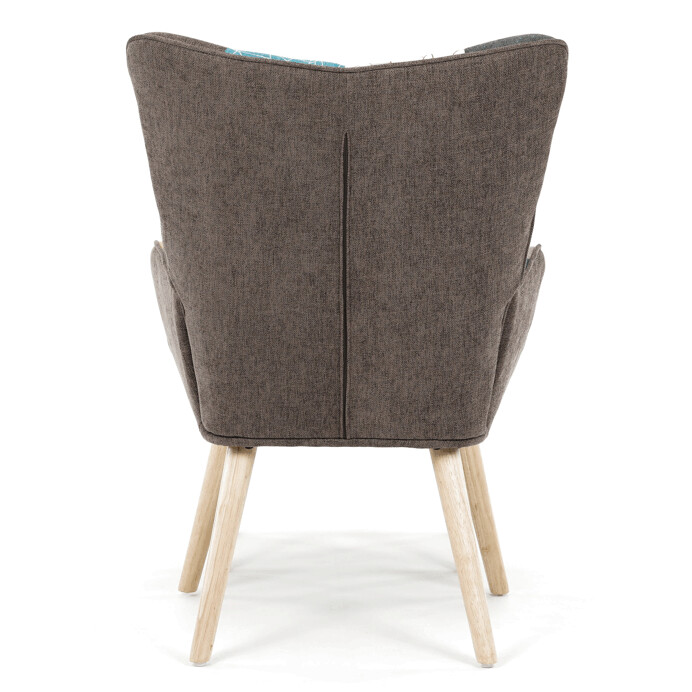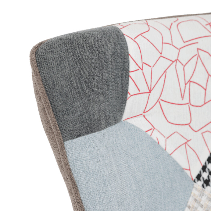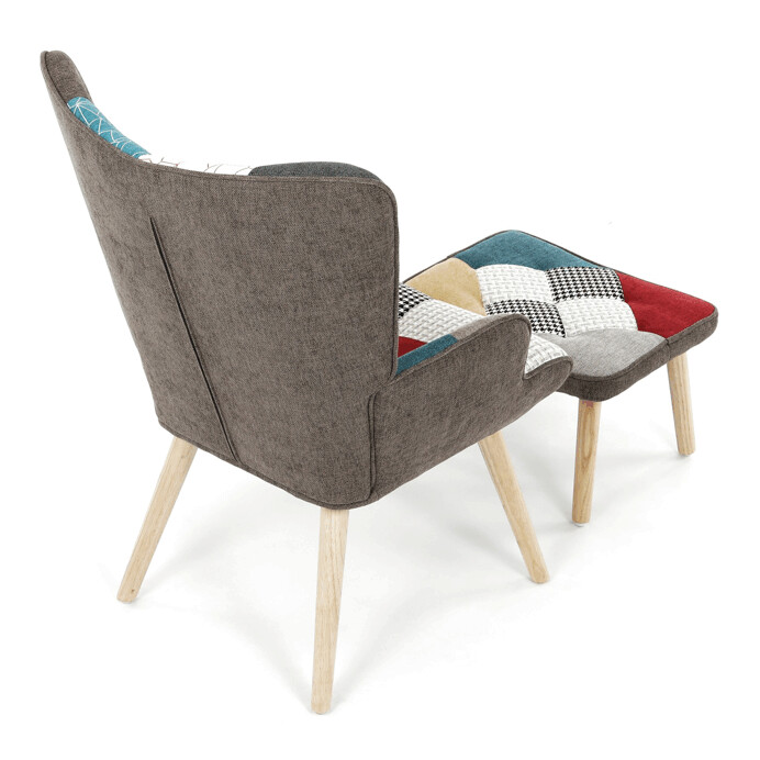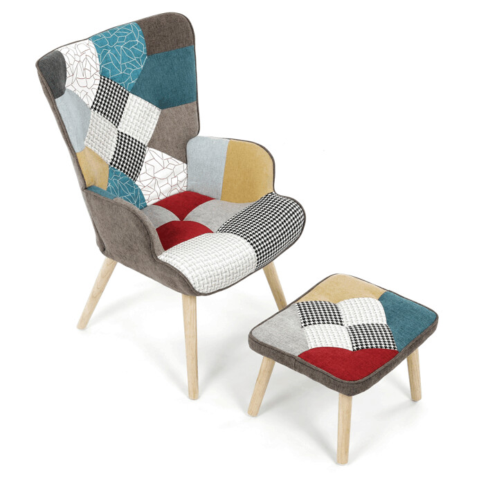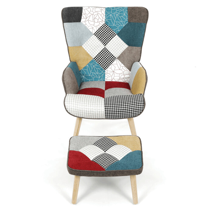 Relaxačné kreslo s podnožkou v patchworkovom dizajne kombinuje viacfarebnú látku s pevnými nohami z masí...zobraziť celý popis produktu