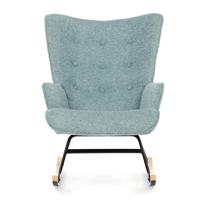 Hojdacie kreslo v modrom prevedení je potiahnuté prémiovou látkou, ktorá ponúka príjemný dotyk a jednoduchú údržbu. Sedák a operadlo sú ergonomicky tvarované pre pohodlné sedenie, doplnené o pevné čalúnené podrúčky. Stabilné nohy sú vyrobené z masívneho kaučukovníka a doplnené o čierny kovový rám, ktorý zabezpečuje pevnosť a dlhú životnosť. Hojdací mechanizmus umožňuje plynulé hojdanie, ktoré prispieva k relaxácii a oddychu. Kreslo je určené do interiérov s dôrazom na komfort a štýl, jeho rozmery a nosnosť zodpovedajú bežným štandardom pre hojdacie kreslá.