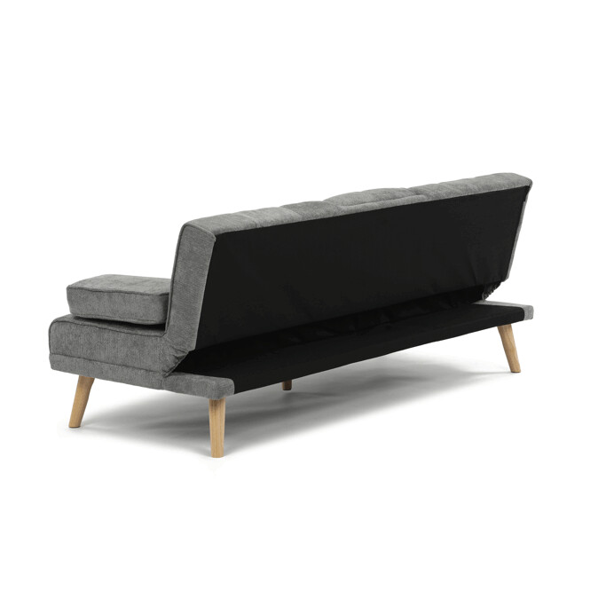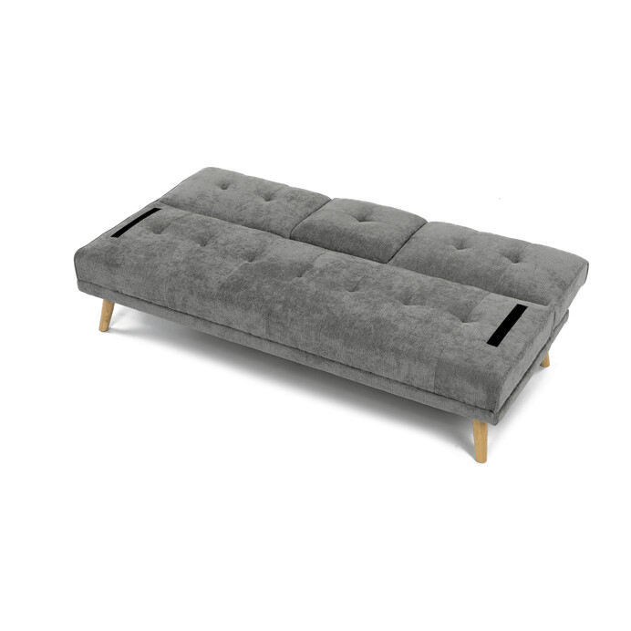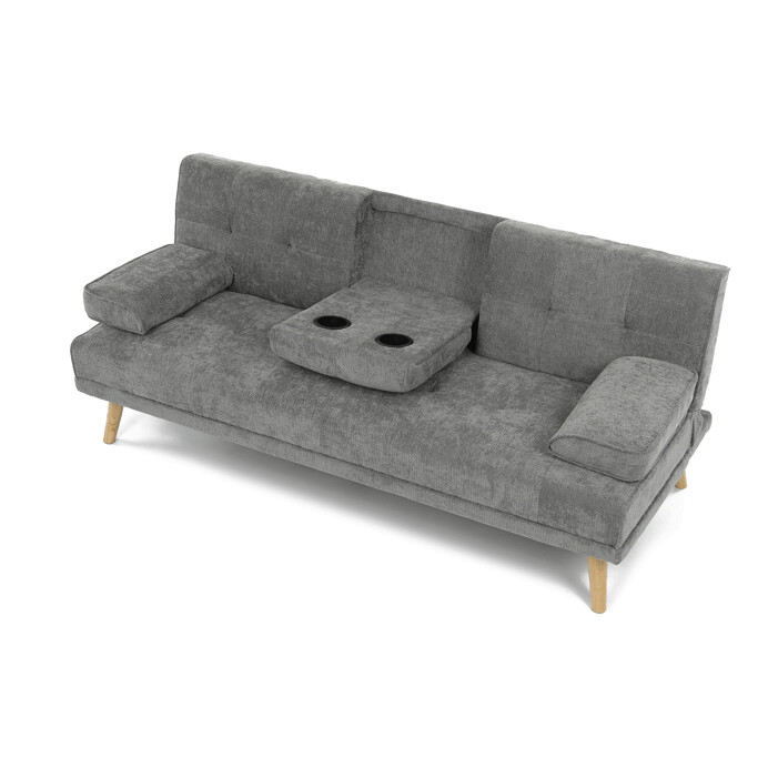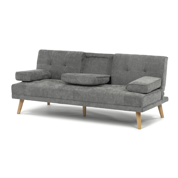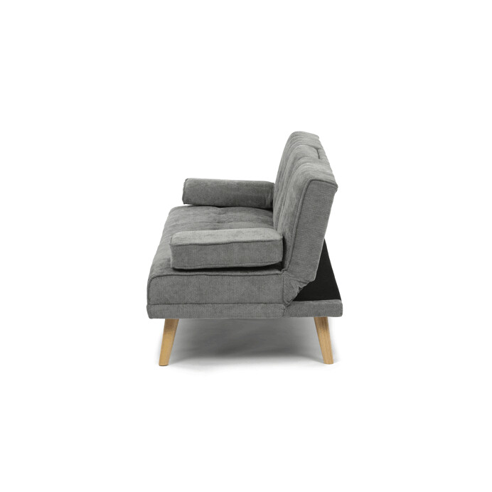 Rozkladacia trojmiestna pohovka ASB-C3034 GREY2 je čalúnená sivou prémiovou látkou, ktorá zabezpečuje príjemný dotyk a jednoduchú údržbu. Pevná konštrukcia z masívneho kaučukovníka poskytuje stabilitu a dlhú životnosť. Pohovka ponúka praktickú funkciu rozkladu click-clack, ktorá umožňuje rýchlu premenú na pohodlné lôžko pre príležitostné prespanie. Súčasťou je aj stredový držiak nápojov integrovaný v operadle, ktorý prispieva k väčšiemu komfortu pri oddychu. Dizajn dopĺňajú elegantné drevené nohy v prírodnom odtieni, ktoré podčiarkujú moderný a zároveň nadčasový vzhľad.