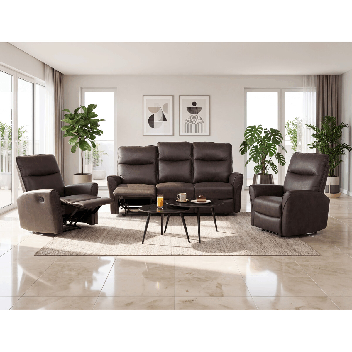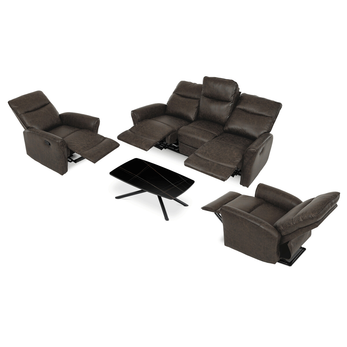 Moderná sedacia súprava 3+1+1 v hnedom odtieni s vintage efektom vnesie do obývačky nadčasovú eleganciu a maximálny komfort. Pohovka je rozkladacia a jednotlivé kreslá disponujú manuálnym polohovaním, vďaka ktorému si jednoducho nastavíte ideálnu pozíciu na relax. Kvalitné látkové čalúnenie s vintage vzhľadom pôsobí luxusne a zároveň útulne. Stabilné kovové prvky a pohodlné polstrovanie zaručujú dlhú životnosť aj vysoký komfort sedenia. Tento set je skvelou voľbou do moderných interiérov a je produktom značky Autronic.