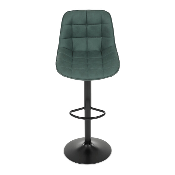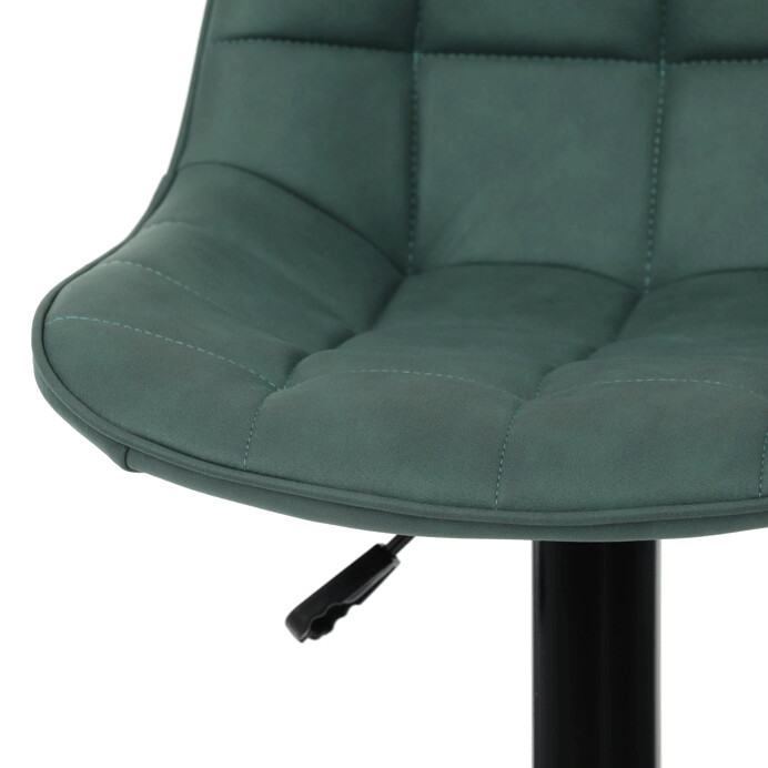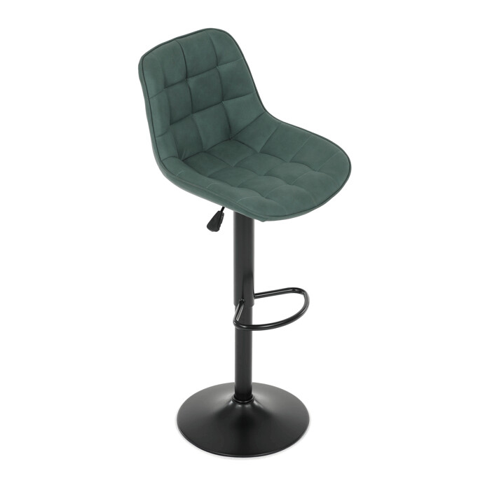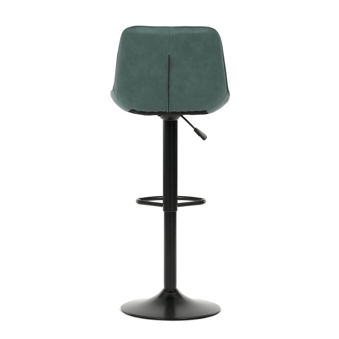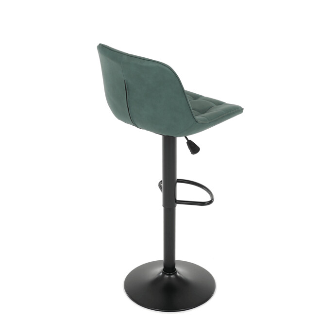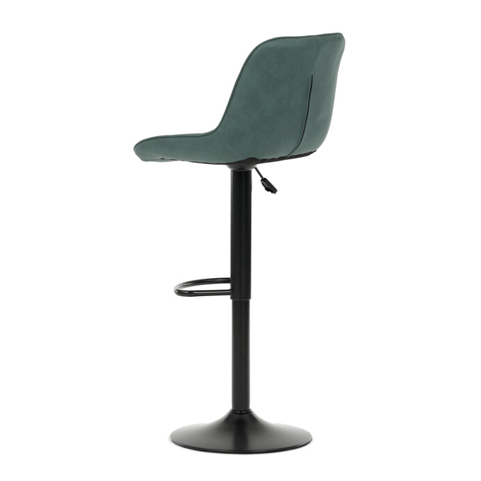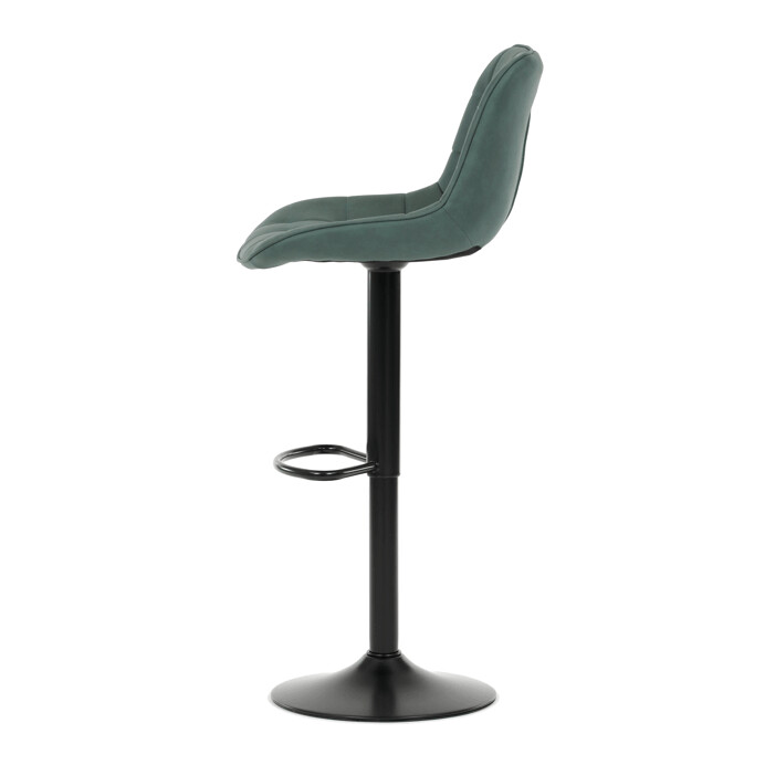Barová stolička AUB-V3066 GRN3 kombinuje moderný dizajn s praktickými funkciami pre pohodlné sedenie pri barovom pulte. Sedák aj operadlo sú potiahnuté zelenou látkou v dekore brúseného kože, ktorá ponúka príjemnú textúru a jednoduchú údržbu. Dizajnové prešívanie dodáva stoličke výrazný vizuálny efekt a zároveň zvyšuje komfort vďaka lepšiemu tvarovaniu sedáka. Stabilná podnož z čierneho kovu je vybavená otočným mechanizmom a plynulým nastavením výšky, čo umožňuje prispôsobenie podľa potreby používateľa. Praktický oporný kruh poskytuje pohodlnú oporu nôh, zatiaľ čo celková konštrukcia je navrhnutá pre dlhú životnosť a stabilitu.