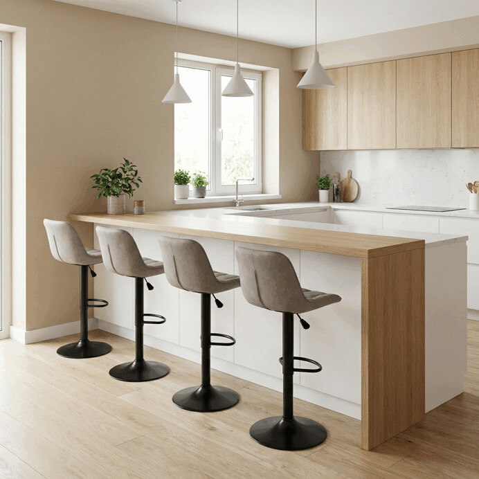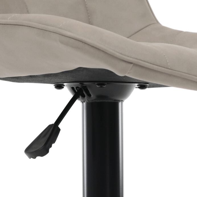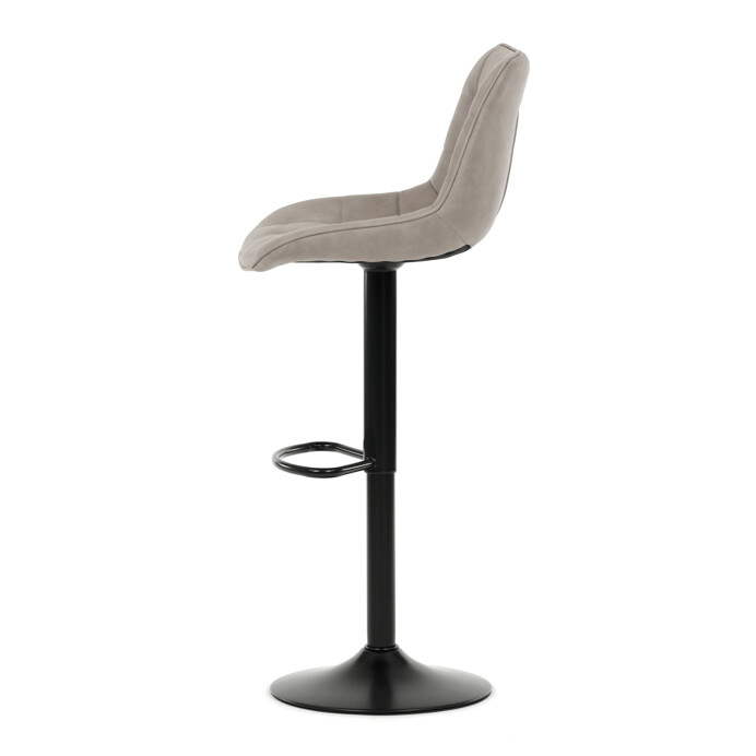 Barová stolička AUB-V3066 LAN3 kombinuje moderný dizajn s praktickou funkčnosťou vďaka výškovo nastaviteľnému mechanizmu, ktorý umožňuje jednoduché prispôsobenie výšky sedadla podľa potreby. Sedadlo aj operadlo sú potiahnuté lanýžovou látkou v dekore brúseného kože, ktorá ponúka príjemnú mäkkosť a vizuálny efekt pripomínajúci prírodný materiál. Dizajnové prešívanie v podobe štvorcových políčok dodáva stoličke výrazný štýlový detail a zároveň zvyšuje komfort sedenia. Stabilná kovová podnož v čiernom matnom prevedení je vybavená praktickou opierkou na nohy, ktorá zvyšuje pohodlie pri dlhšom sedení. Celková konštrukcia je navrhnutá pre dlhú životnosť a jednoduchú údržbu, pričom stolička ponúka univerzálne využitie v domácich aj komerčných baroch či kuchynských linkách.