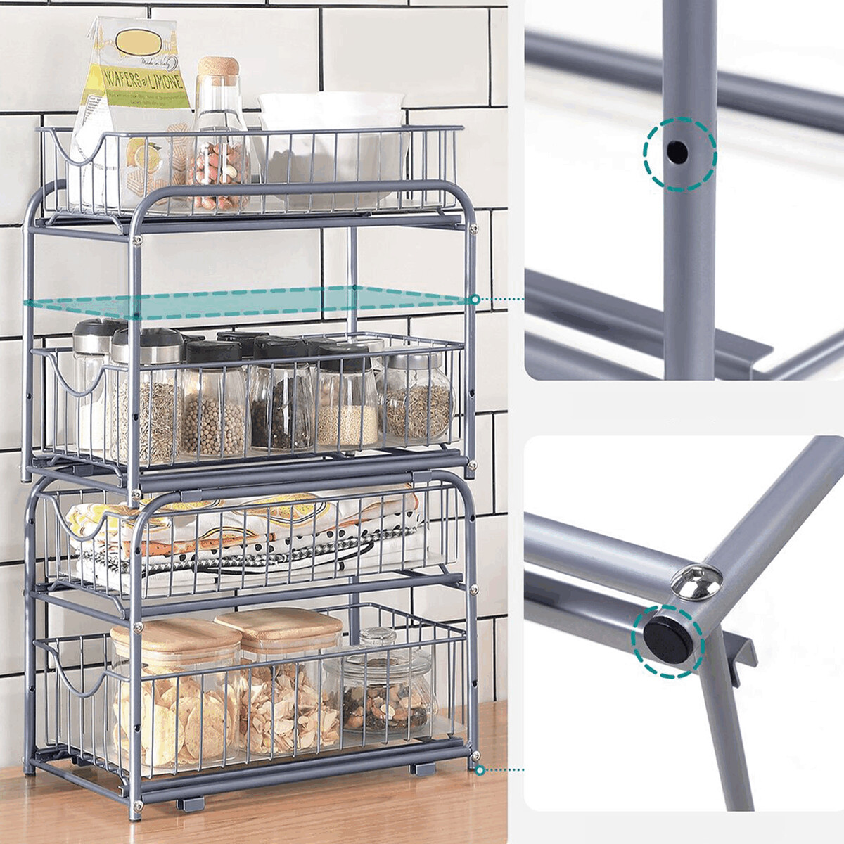 Strieborný organizér s dvoma vysúvacími kovovými zásuvkami ponúka praktické riešenie na uskladnenie drob...zobraziť celý popis produktu