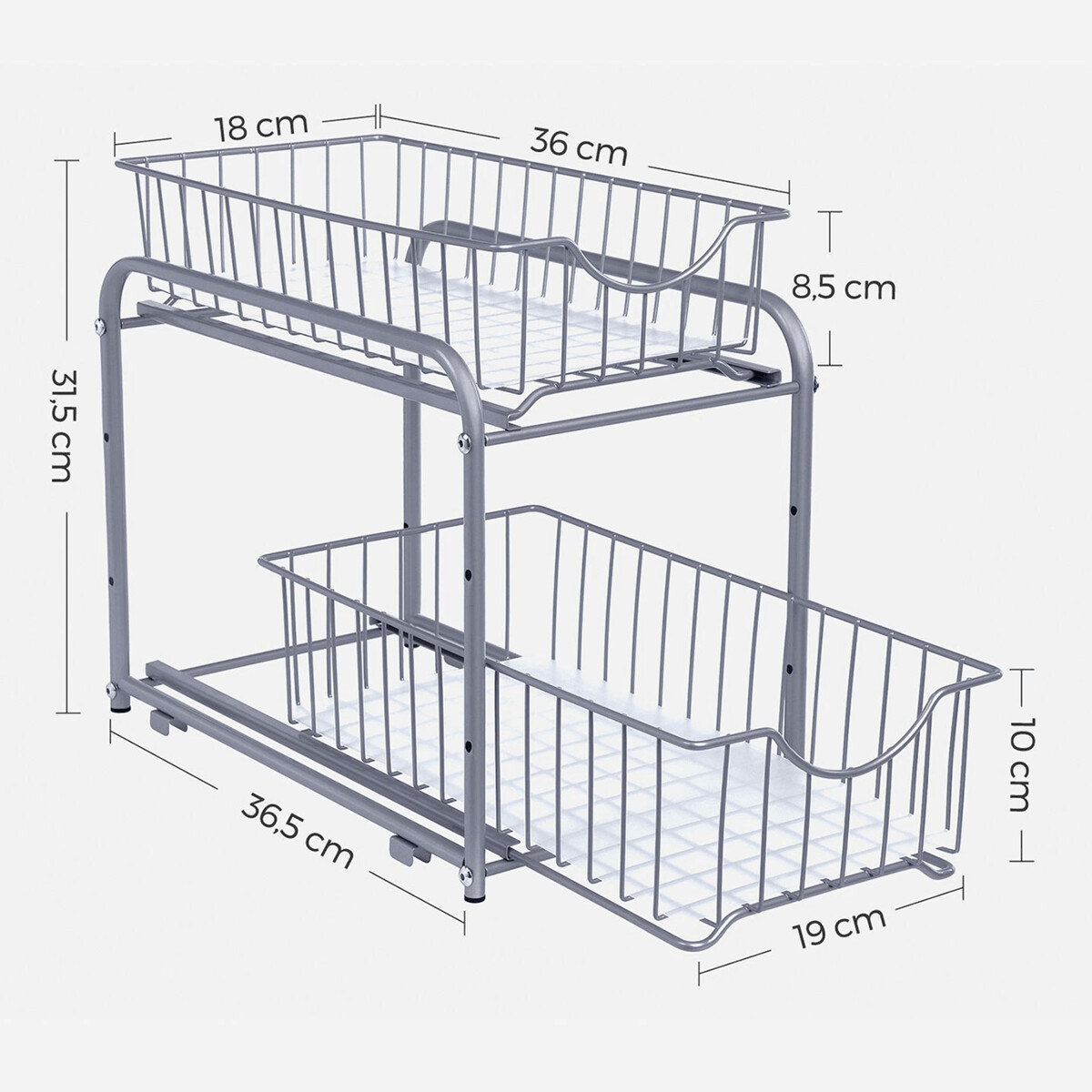 Strieborný organizér s dvoma vysúvacími kovovými zásuvkami ponúka praktické riešenie na uskladnenie drobných predmetov v domácnosti alebo kancelárii. Jeho pevné oceľové prevedenie zabezpečuje stabilitu a dlhú životnosť, pričom zásuvky je možné ľahko vysunúť pre pohodlný prístup k obsahu. Vďaka možnosti stohovania umožňuje efektívne využitie priestoru na pracovnej ploche alebo v regáloch. Jednoduchý dizajn v neutrálnej striebornej farbe sa hodí do rôznych interiérov a uľahčuje organizáciu každodenných potrieb.
