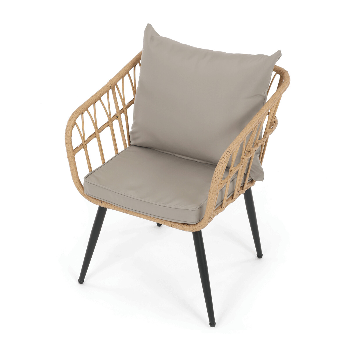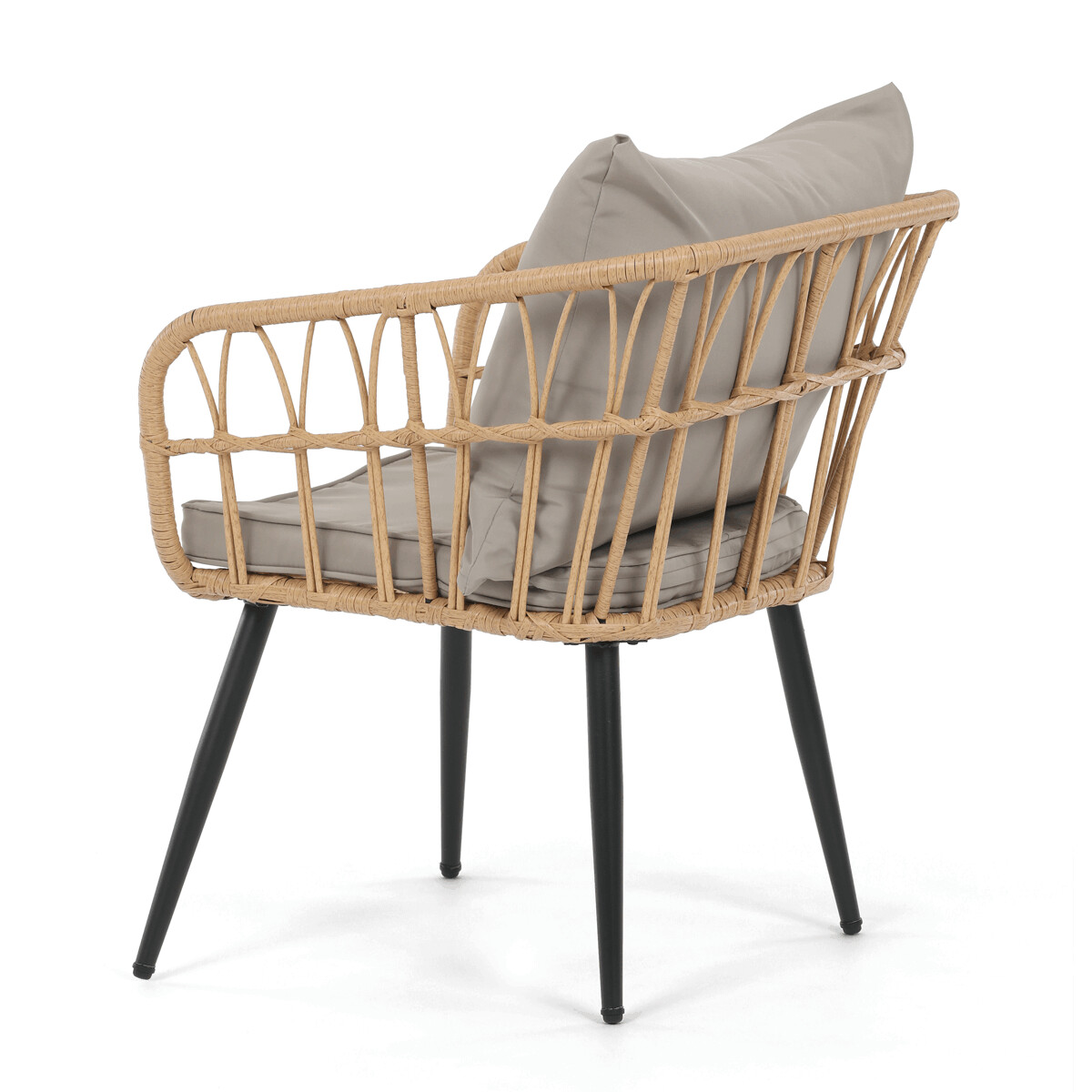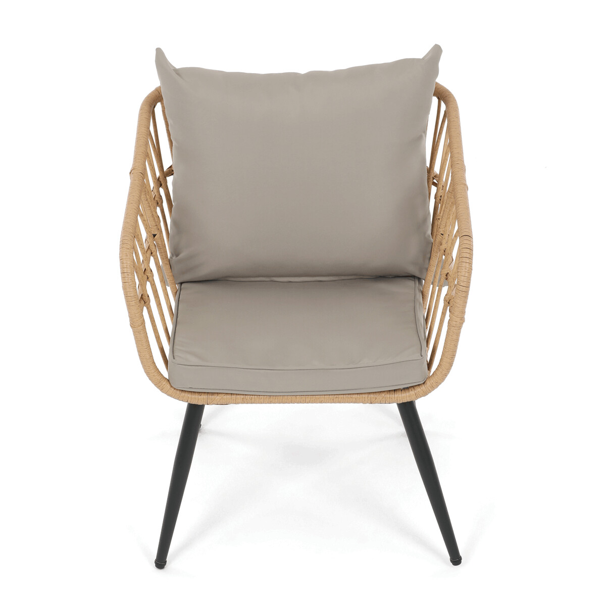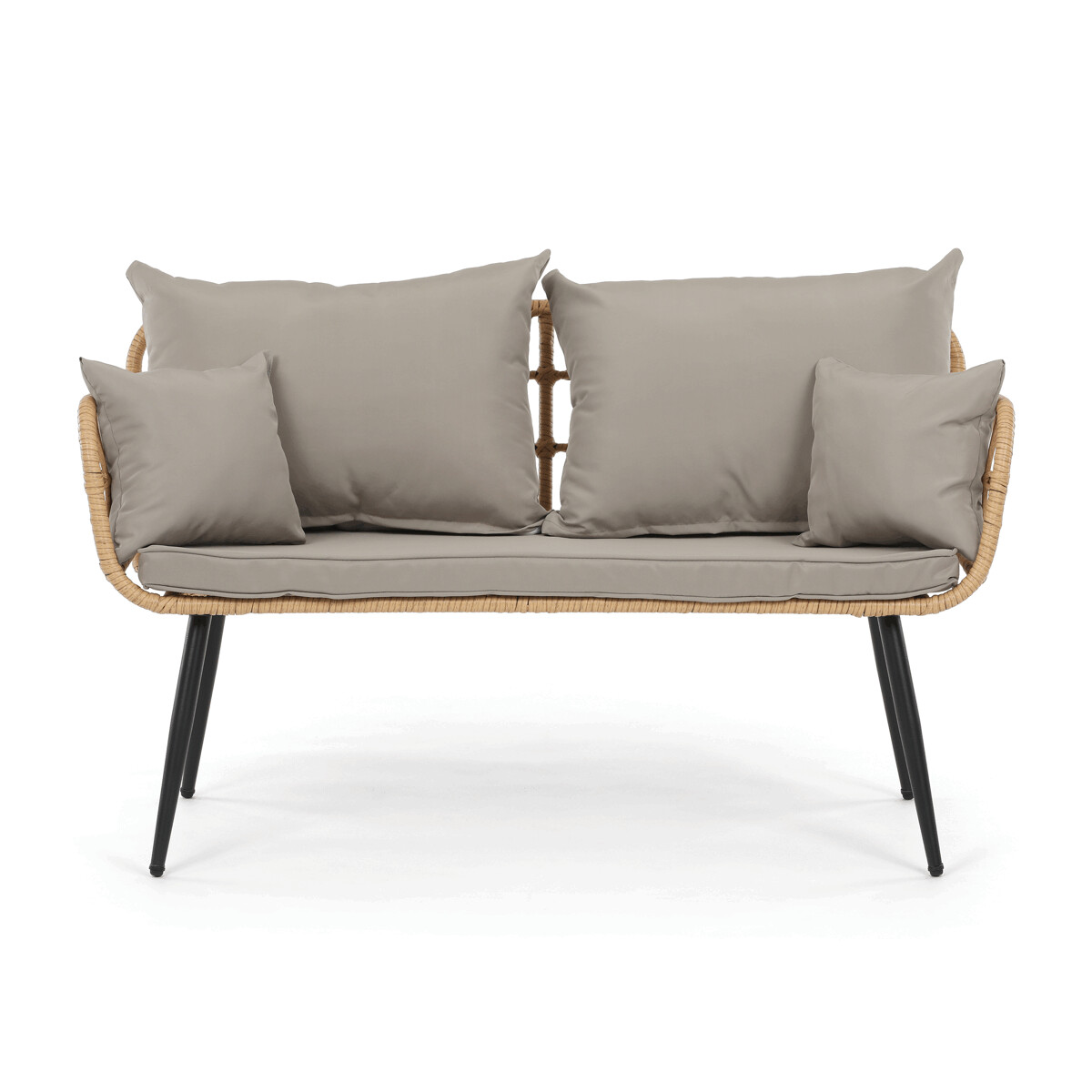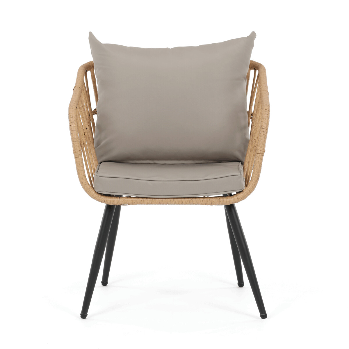 Záhradná sedacia súprava AZ-F1508 NAT kombinuje pevnú kovovú konštrukciu v čiernej farbe s odolným umelým ratanom v béžovom odtieni a polywoodovou doskou stolíka, ktorá je navrhnutá pre dlhodobé vonkajšie použitie. Súprava pozostáva z pohodlnej dvojmiestnej pohovky a dvoch samostatných kresiel, všetkých vybavených vodeodolnými sivými vankúšmi, ktoré zabezpečujú komfort aj pri vonkajšom posedení. Kovové nohy s práškovým lakom prispievajú k stabilite a odolnosti voči poveternostným vplyvom, zatiaľ čo ľahko otvorená konštrukcia operadiel a podrúčok podporuje vzdušnosť a moderný vzhľad. Polywoodová doska stolíka je ľahko udržiavateľná a dopĺňa celkový dizajn súpravy, ktorá je ideálna na relaxáciu na terase či záhrade. Nosnosť jednotlivých sedadiel zodpovedá štandardným požiadavkám pre vonkajší nábytok, čo zaručuje bezpečné a pohodlné používanie.