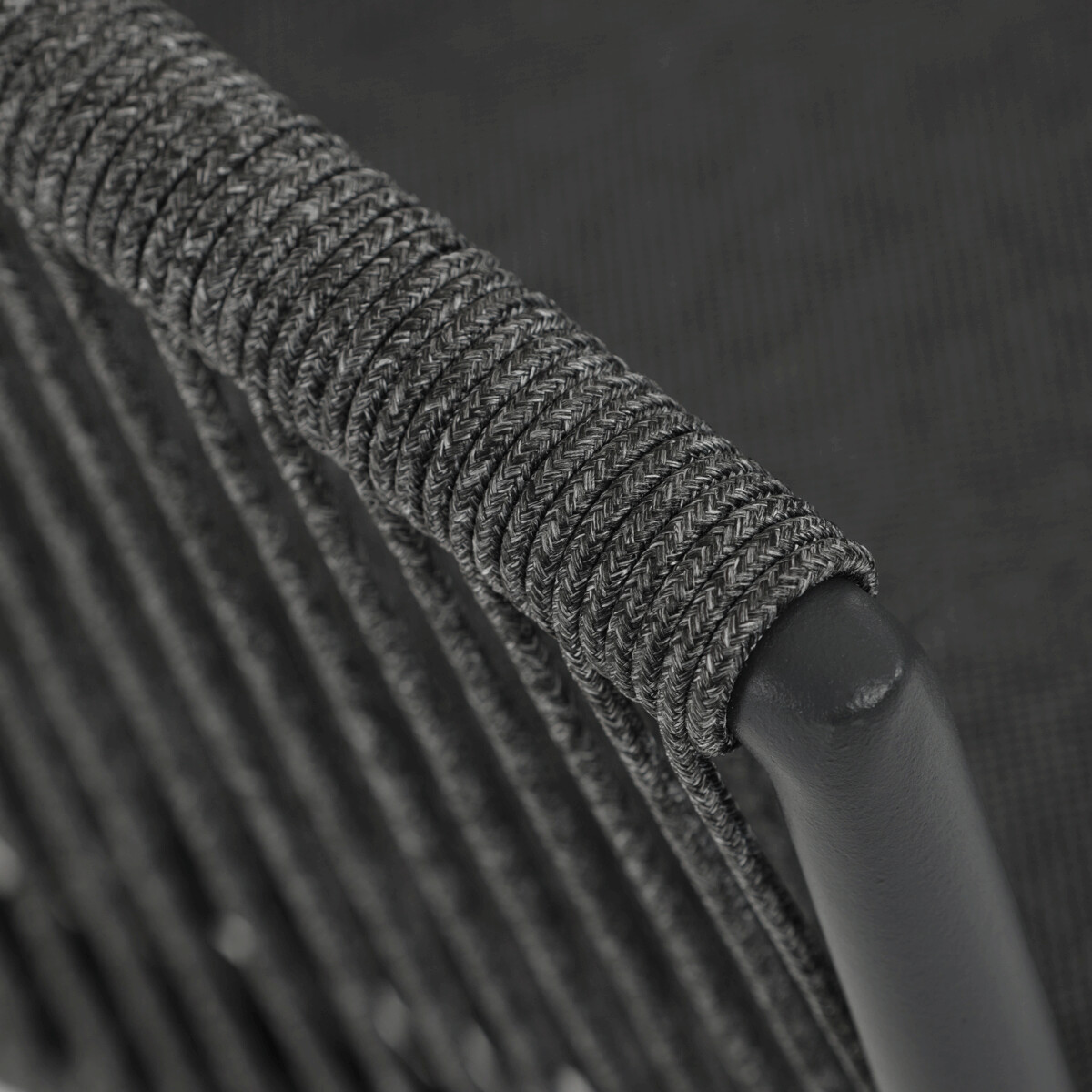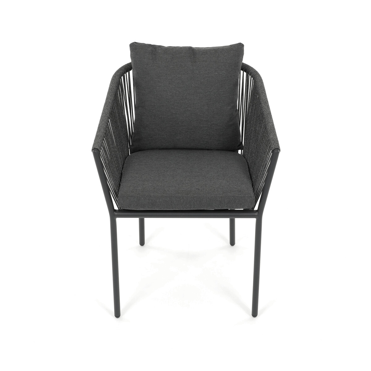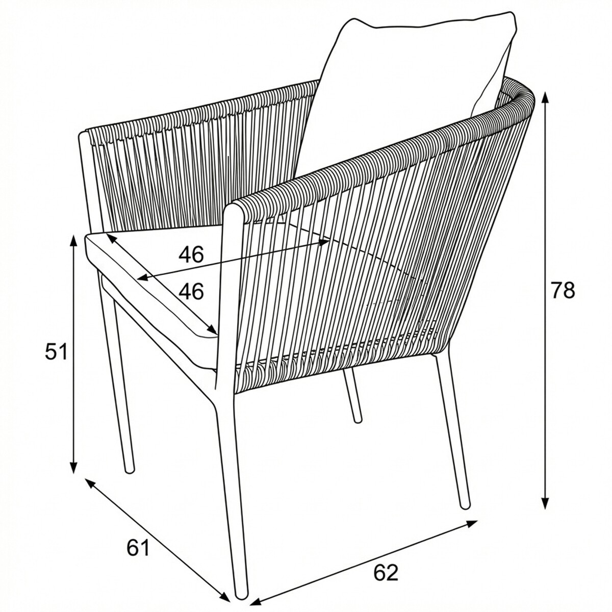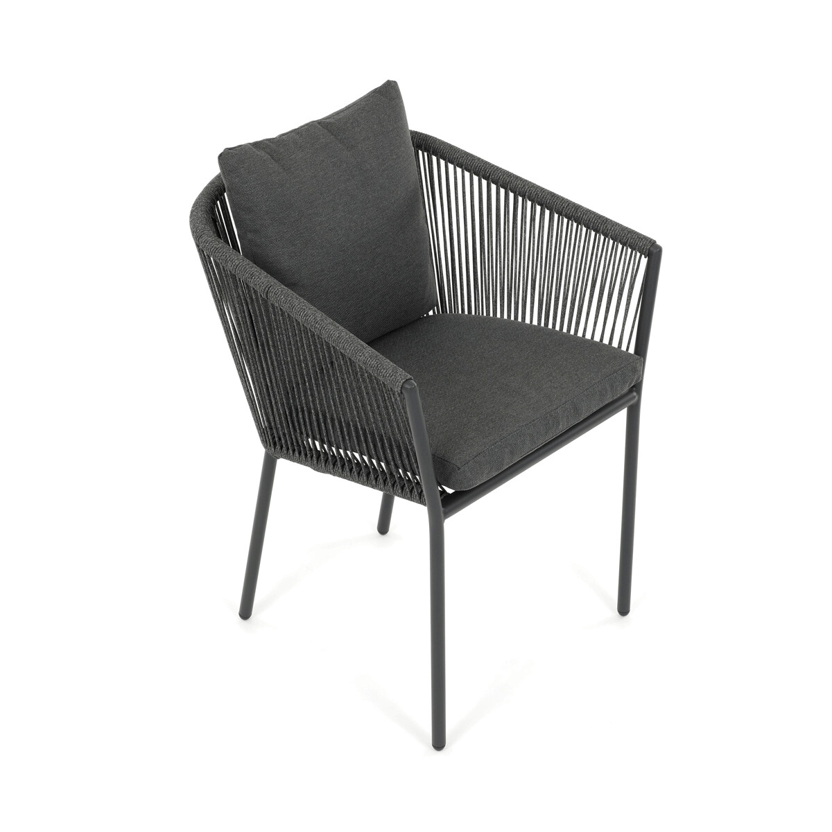 Záhradná stolička s pevným hliníkovým rámom v šedom odtieni ponúka stabilitu a dlhú životnosť aj pri vonkajšom použití. Operadlo a sedák sú čalúnené rýchloschnúcou šedou látkou, ktorá je vodeodolná a ľahko sa udržiava, čo zabezpečuje komfort aj pri meniacom sa počasí. Dizajn stoličky dopĺňa moderné prevedenie s opletením z odolných vlákien, ktoré prispieva k celkovej pevnosti a vizuálnej ľahkosti. Vďaka ergonomickému tvaru operadla a sedáka poskytuje pohodlné sedenie počas záhradných posedení. Nosnosť stoličky zodpovedá štandardným požiadavkám pre vonkajší nábytok, čo ju robí vhodnou na každodenné používanie.