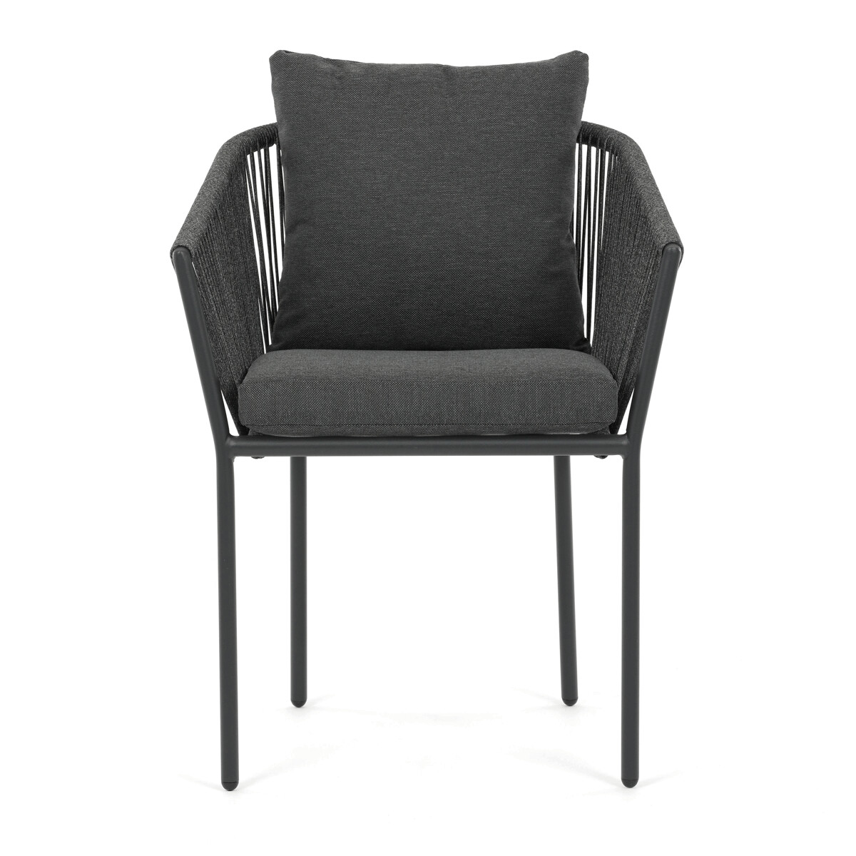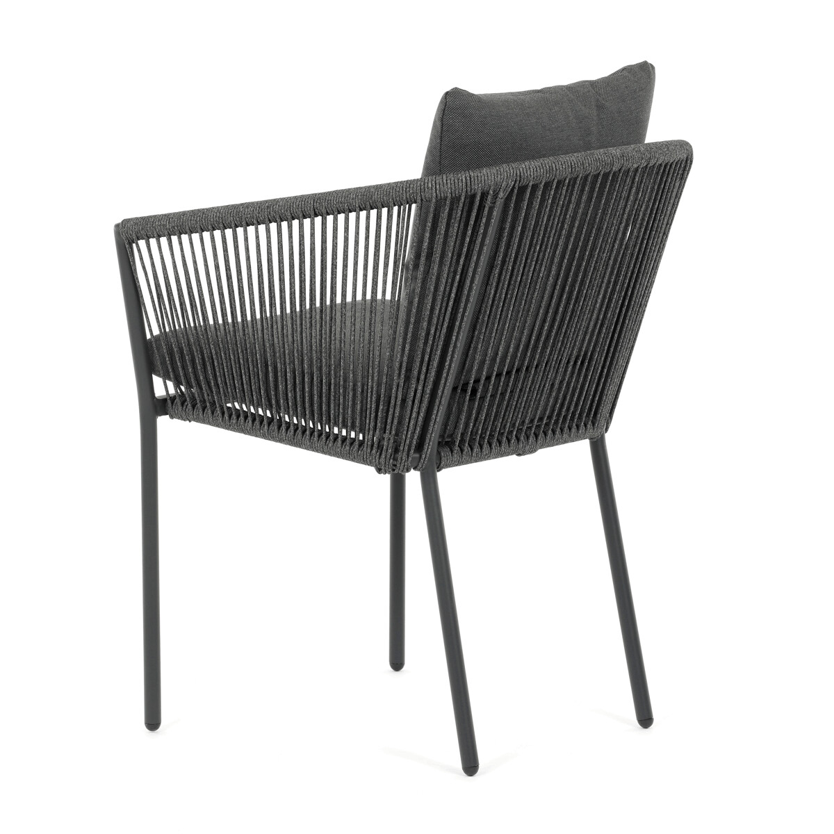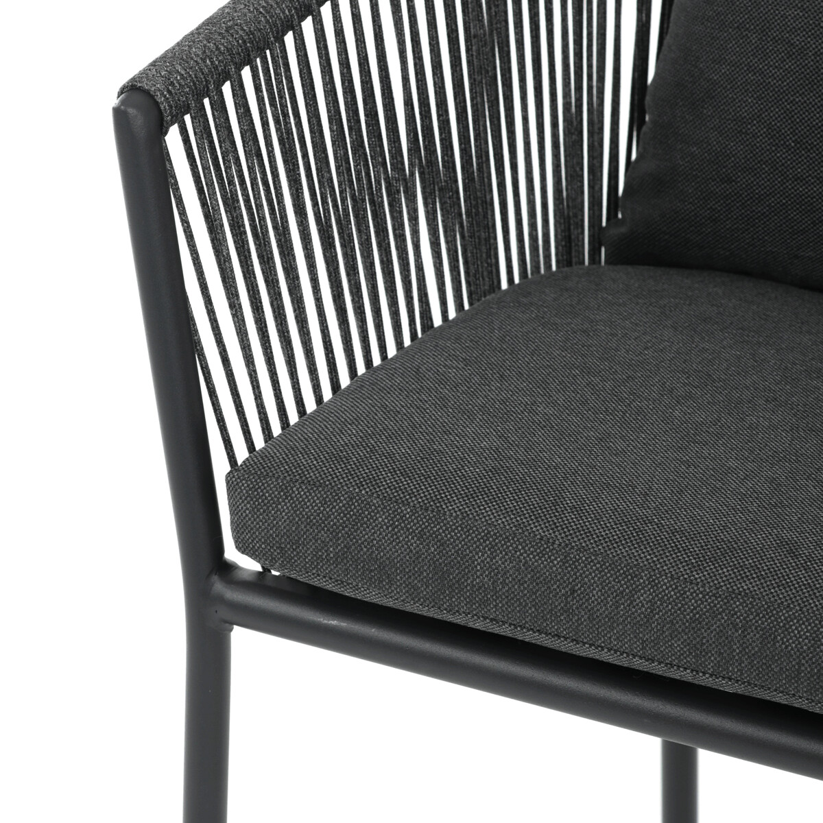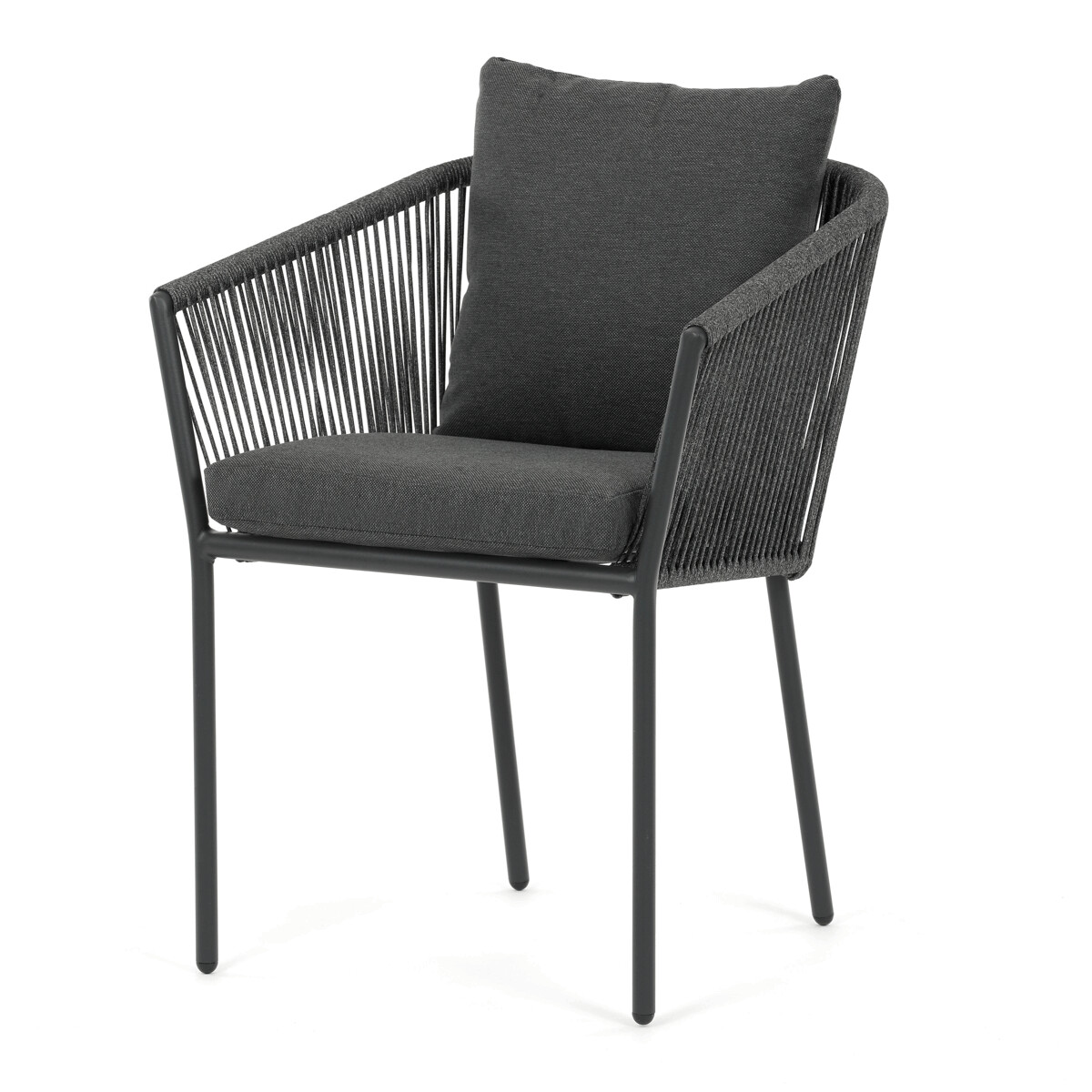 Záhradná stolička s pevným hliníkovým rámom v šedom odtieni ponúka stabilitu a dlhú životnosť aj pri vonkajšom použití. Operadlo a sedák sú čalúnené rýchloschnúcou šedou látkou, ktorá je vodeodolná a ľahko sa udržiava, čo zabezpečuje komfort aj pri meniacom sa počasí. Dizajn stoličky dopĺňa moderné prevedenie s opletením z odolných vlákien, ktoré prispieva k celkovej pevnosti a vizuálnej ľahkosti. Vďaka ergonomickému tvaru operadla a sedáka poskytuje pohodlné sedenie počas záhradných posedení. Nosnosť stoličky zodpovedá štandardným požiadavkám pre vonkajší nábytok, čo ju robí vhodnou na každodenné používanie.