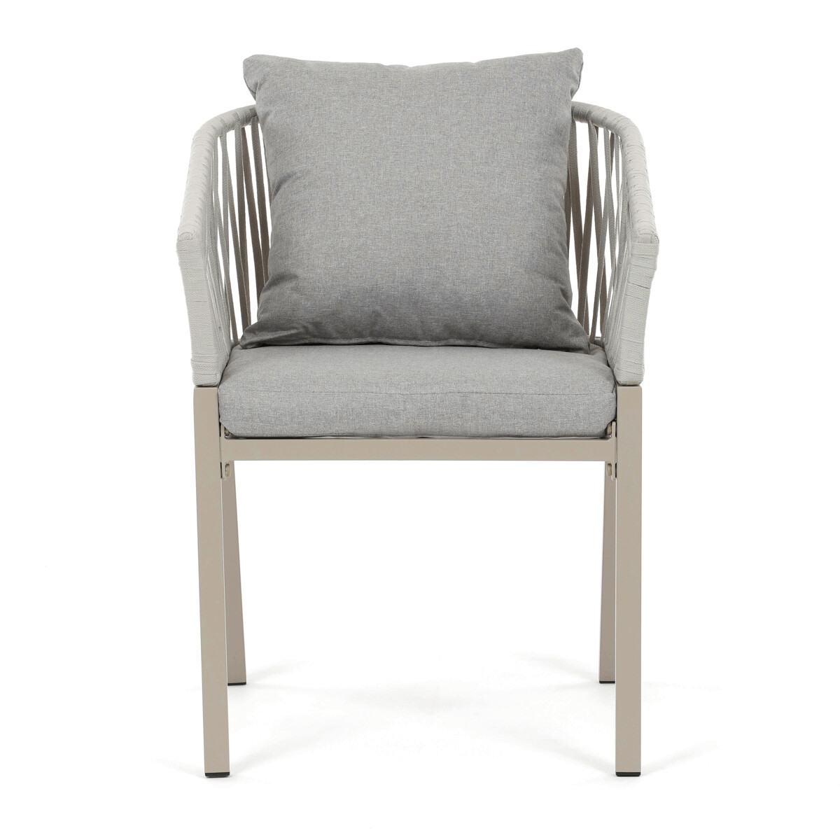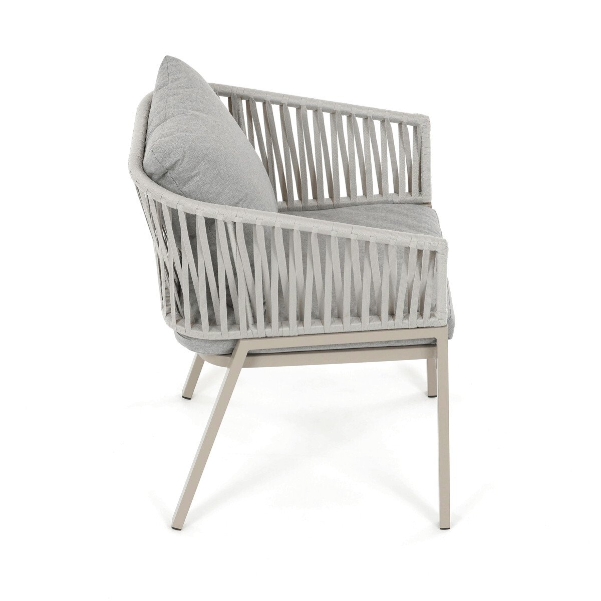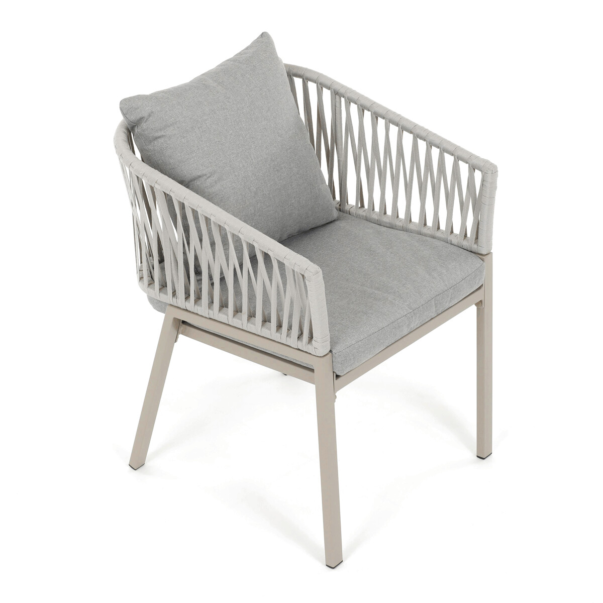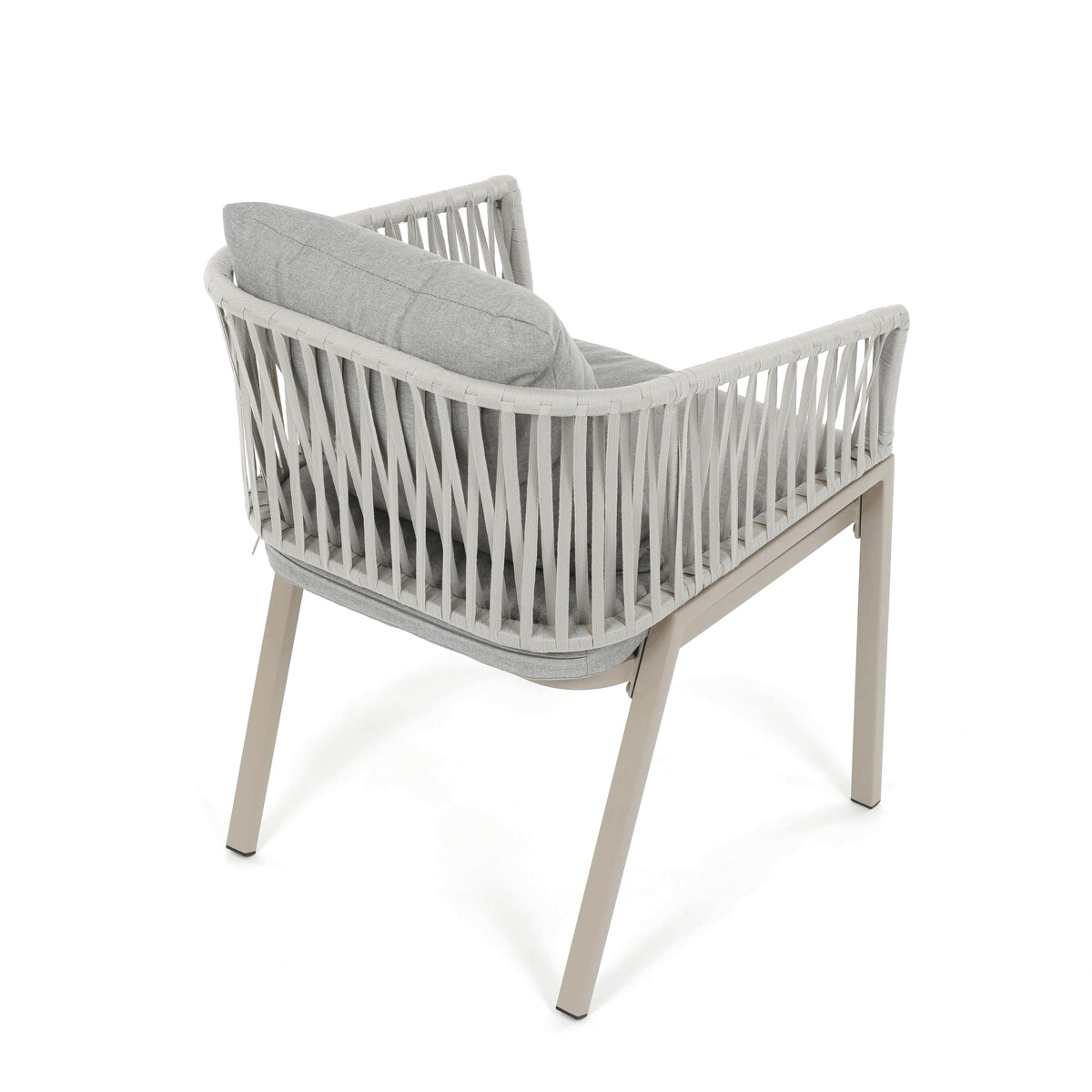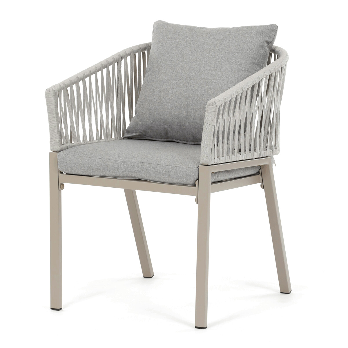 Záhradná stolička v béžovom prevedení spája stabilnú kovovú podnož s pohodlným sedákom a operadlom potiahnutým látkou v príjemnom odtieni. Nadčasový dizajn s jemnými líniami a otvorenou konštrukciou operadla vytvára vzdušný vzhľad vhodný pre rôzne vonkajšie priestory. Stolička je navrhnutá tak, aby poskytovala komfort pri posedení na terase, záhrade či balkóne, pričom pevná kovová podnož zabezpečuje dlhodobú stabilitu a odolnosť voči poveternostným vplyvom. Látkový poťah je príjemný na dotyk a ľahko sa udržiava, čo prispieva k praktickému využitiu v exteriéri. Celková konštrukcia podporuje pohodlnú ergonómiu a umožňuje relaxáciu v prírodnom prostredí.