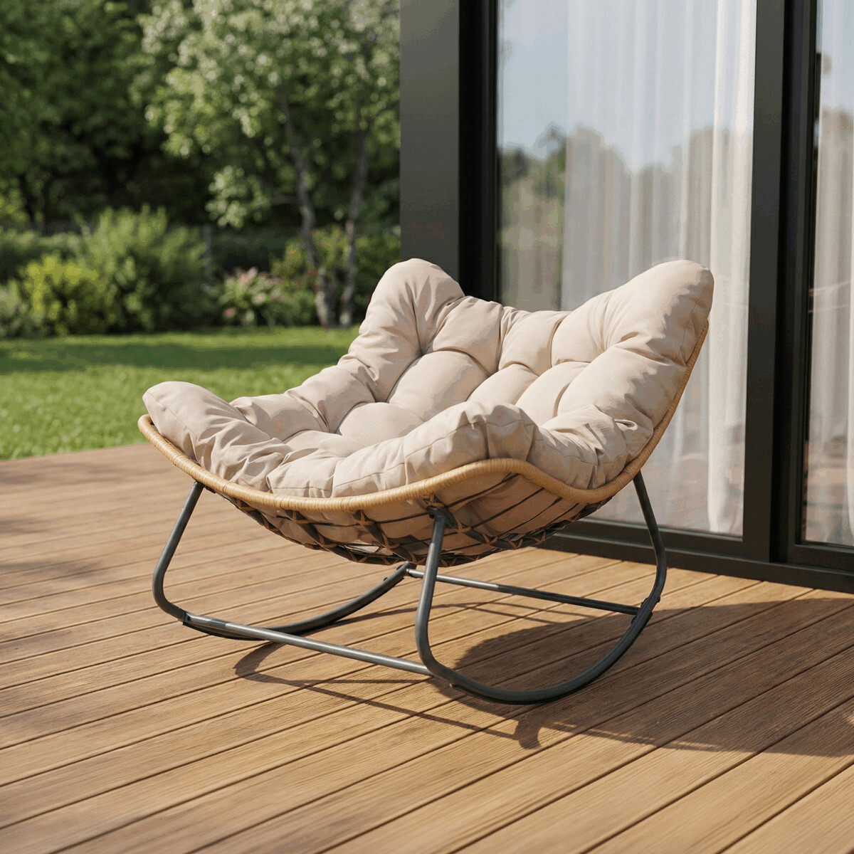Záhradné hojdačkové kreslo v krémovom odtieni ponúka kombináciu ľahkosti a pohodlia vďaka pevnej kovovej podnoži a polyratanovému rámu. Silné polstrovanie z kvalitnej látky zabezpečuje príjemný komfort pri relaxácii, zatiaľ čo hojdačkový mechanizmus umožňuje jemné kolísanie pre maximálne uvoľnenie. Konštrukcia je navrhnutá tak, aby bola stabilná a zároveň ľahko prenosná, čo oceníte pri zmene umiestnenia na balkóne či terase. Povrch kovových nôh je upravený práškovým lakom pre zvýšenú odolnosť voči poveternostným vplyvom. Rozmery a nosnosť zodpovedajú štandardom pre vonkajšie sedenie, čo zabezpečuje dlhodobé používanie.