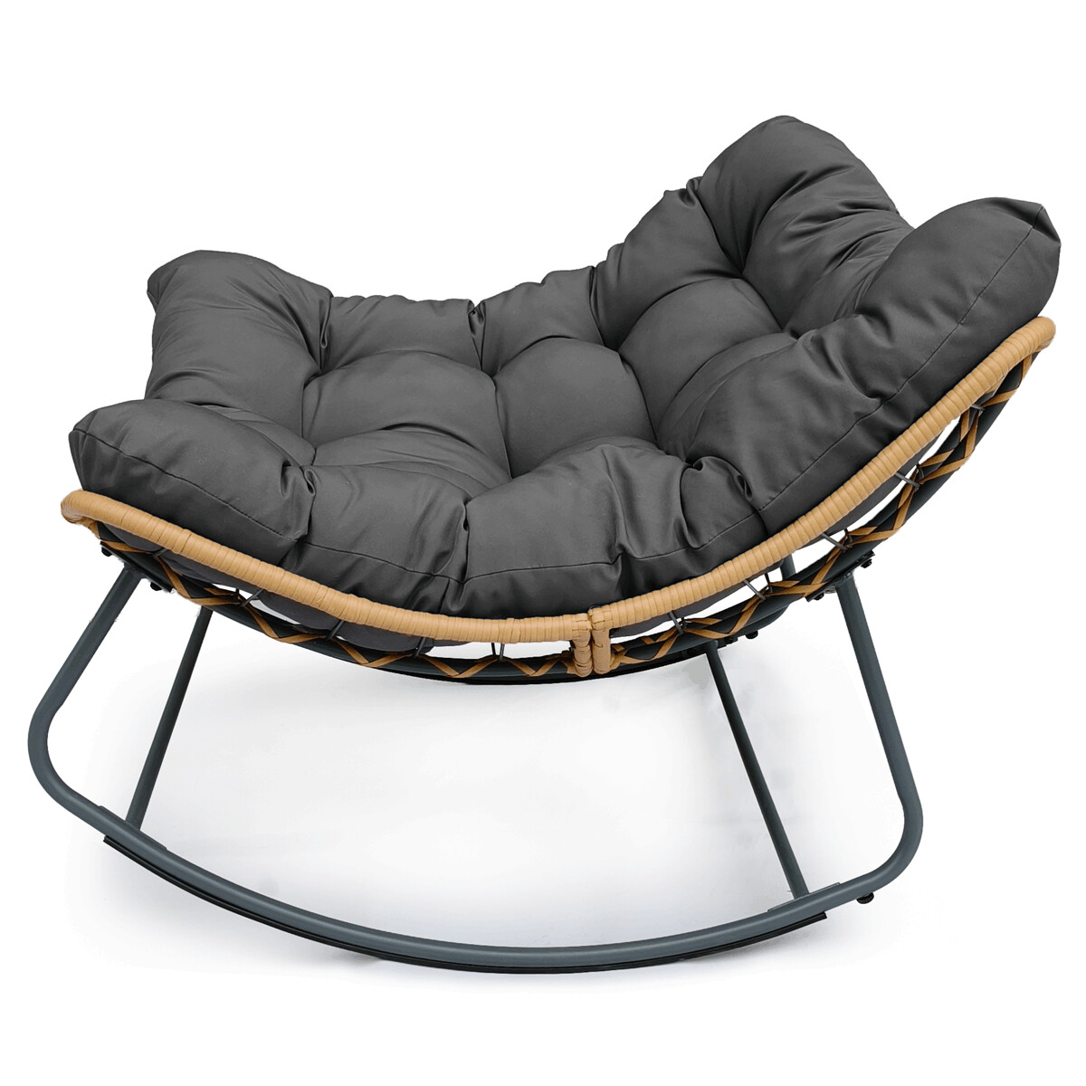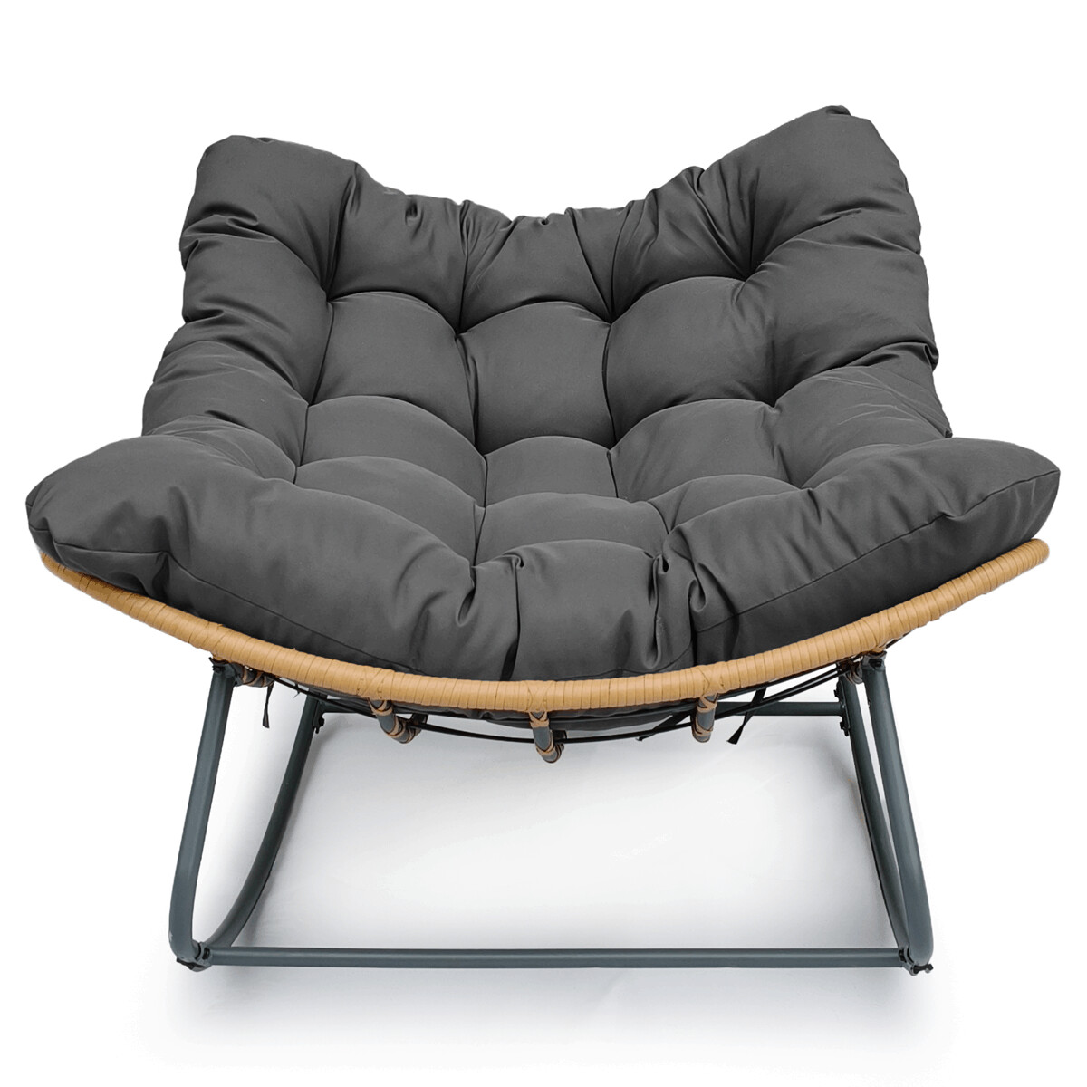 Záhradné hojdačkové kreslo v sivej farbe kombinuje pevný kovový rám s ľahkým polyratanovým opletením, ktoré zabezpečuje odolnosť a jednoduchú údržbu. Silné čalúnenie z látky prináša vysoký komfort sedenia a podporuje relaxáciu na balkóne či terase. Hojdací mechanizmus umožňuje príjemné kolísanie, ktoré prispieva k uvoľneniu a pohode. Konštrukcia je navrhnutá tak, aby bola zároveň stabilná a ľahko prenosná vďaka nízkej hmotnosti. Kreslo je vhodné na vonkajšie použitie a vďaka svojmu dizajnu sa hodí do moderných aj prírodne ladených priestorov.