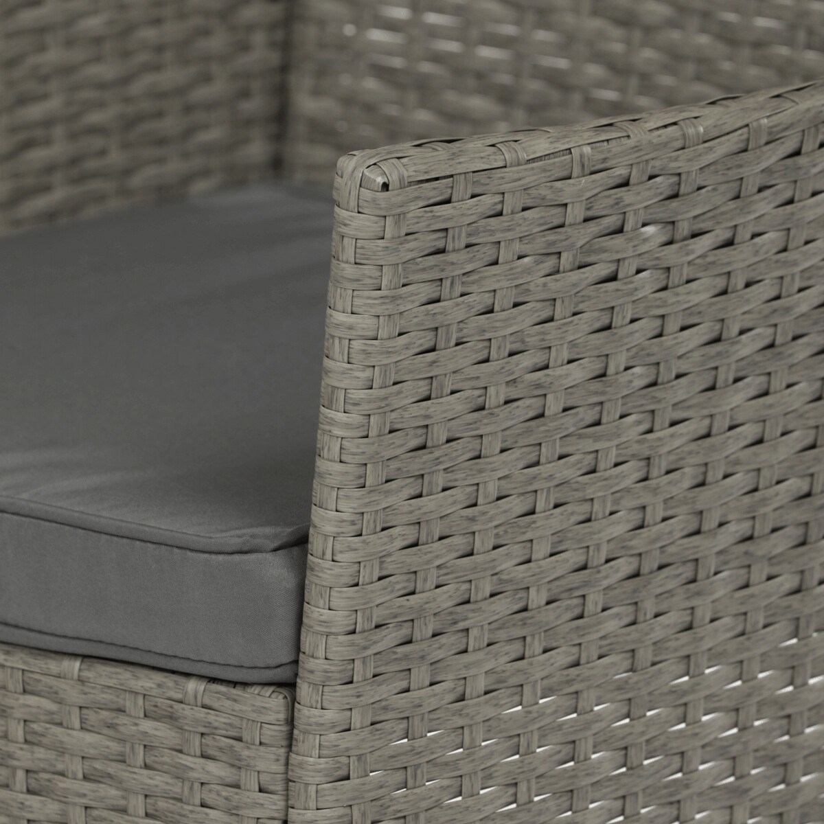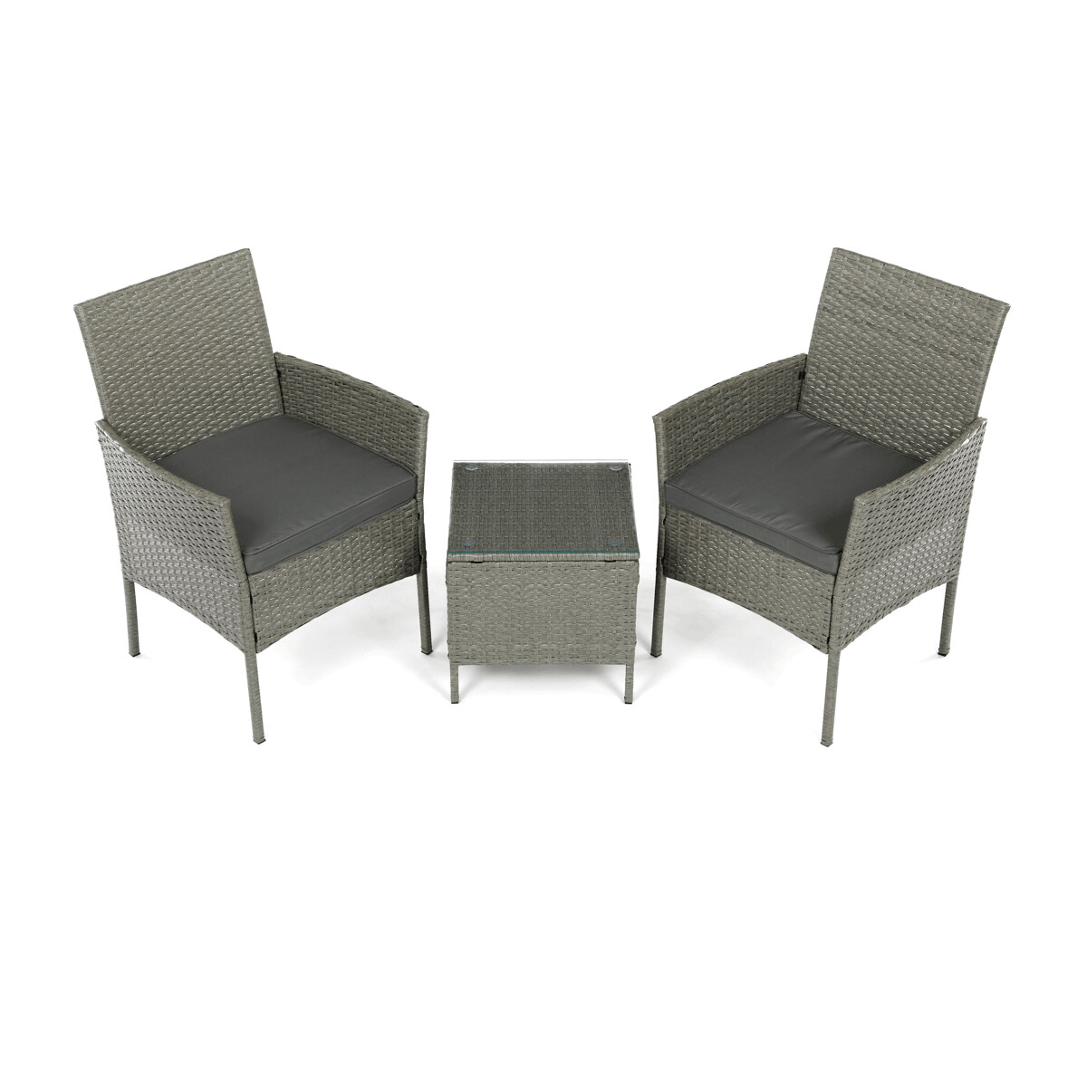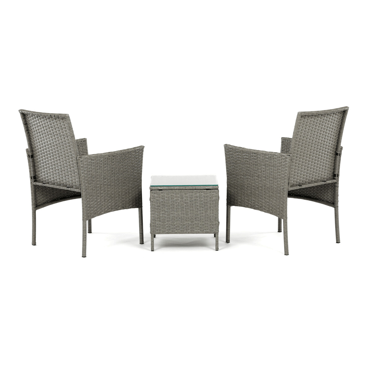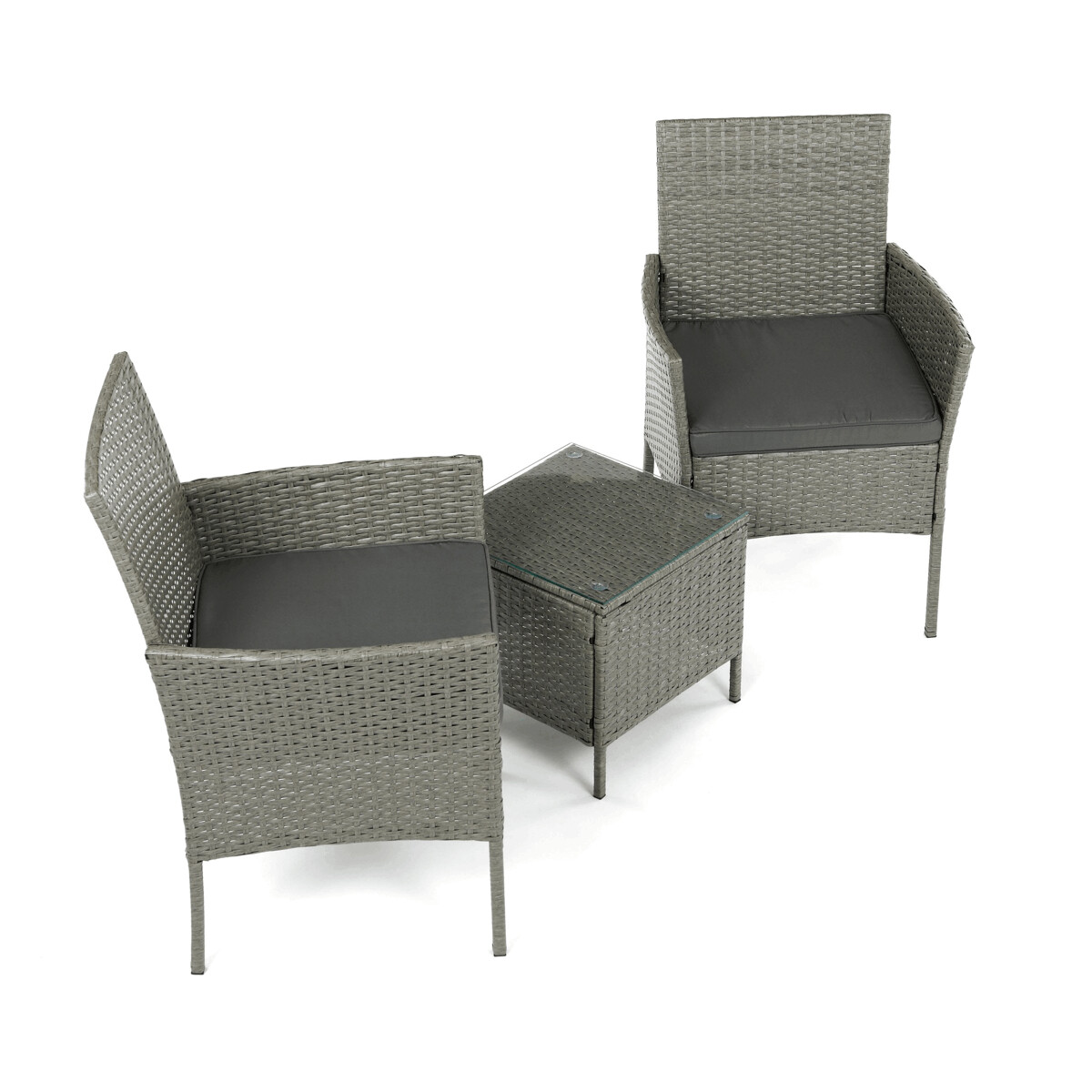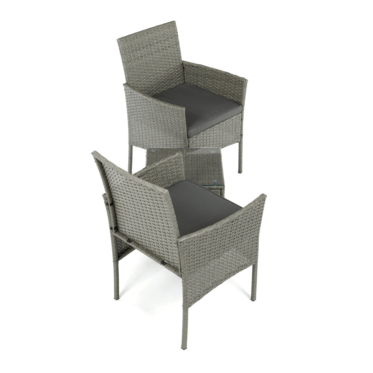 Záhradná zostava 1+2 v šedom prevedení z umelého ratanu ponúka kombináciu štýlu a funkčnosti pre vonkajšie posedenie. Pevná kovová konštrukcia zabezpečuje stabilitu a dlhú životnosť, zatiaľ čo odolný polyratan verne imituje prírodný materiál a ľahko sa udržiava. Súčasťou sú dve pohodlné kreslá s polstrovanými sivými látkovými sedákmi, ktoré prispievajú k pohodlnému posedeniu. Stolová doska je vyrobená z tvrdeného skla, ktoré je odolné voči poškriabaniu a ľahko sa čistí. Kompaktné rozmery a elegantný dizajn umožňujú využitie na balkónoch aj menších terasách.