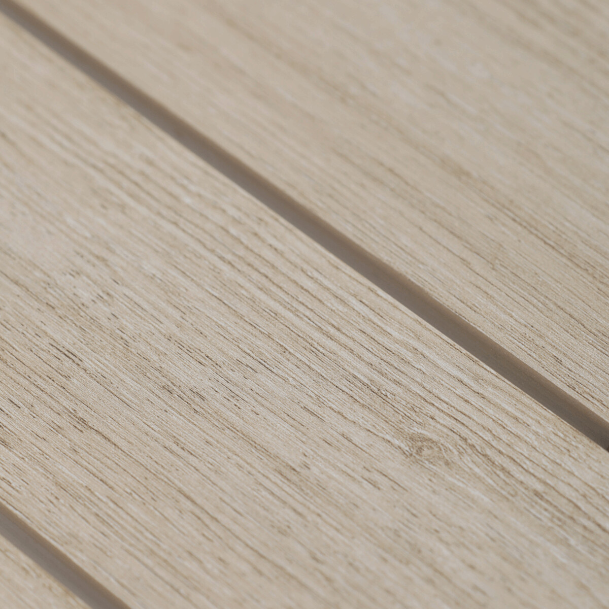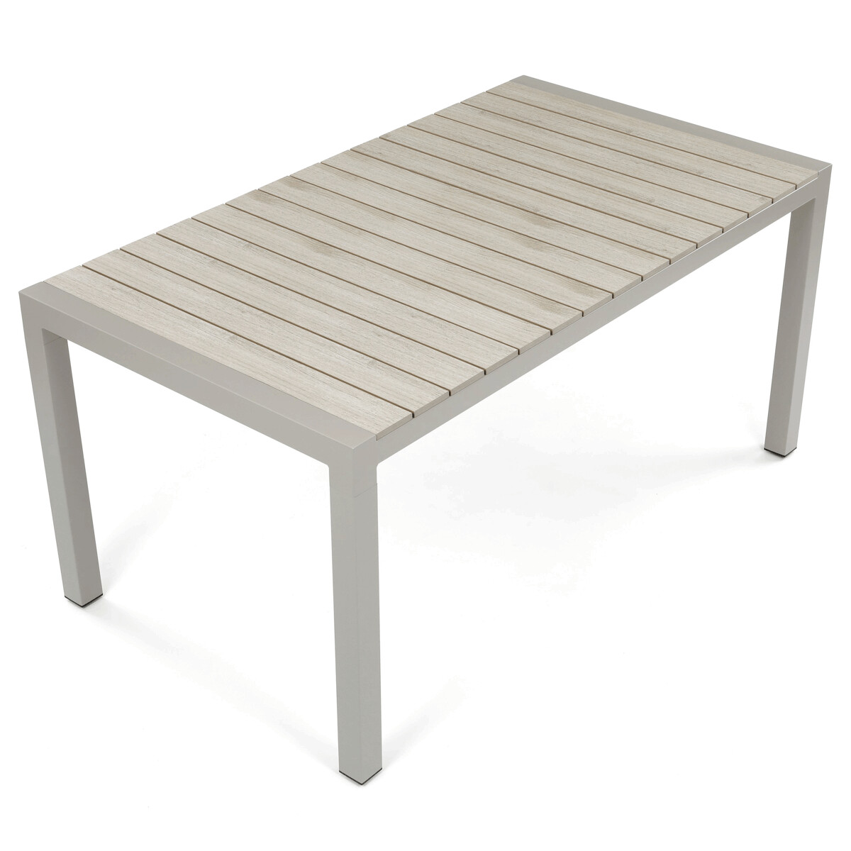 Záhradný stôl s rozmermi 160x90x75 cm kombinuje pevnú hliníkovú konštrukciu v farbe cashmere s odolnou doskou z polywoodu v dekore dubu, ktorá je navrhnutá pre dlhú životnosť a jednoduchú údržbu. Doska s prírodným vzhľadom dreva dodáva stolíku nadčasový dizajn vhodný do rôznych vonkajších priestorov. Robustné nohy z hliníka zabezpečujú stabilitu a odolnosť voči poveternostným vplyvom, čo umožňuje využitie stola na záhrade či terase počas celého roka. Povrchová úprava konštrukcie je matná a hladká, čo prispieva k elegantnému vzhľadu a ľahkému čisteniu. Stôl je ideálnou voľbou pre rodinné posedenie aj vonkajšie stolovanie vďaka svojim praktickým rozmerom a kvalitnému prevedeniu.