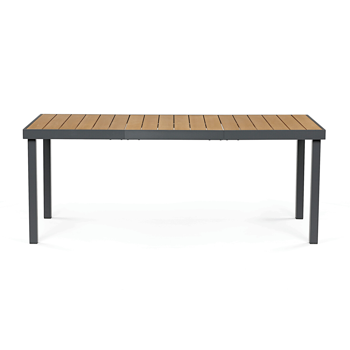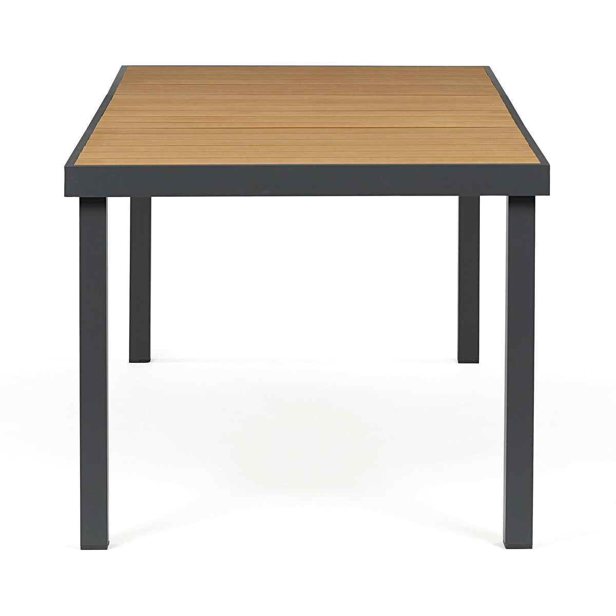 Záhradný stôl s rozmermi 190x90 cm kombinuje pevnú hliníkovú konštrukciu v sivom odtieni s vysoko odolnou doskou z polywoodu v prírodných farbách, ktorá je navrhnutá pre dlhú životnosť a jednoduchú údržbu. Rektifikačné nohy umožňujú vyrovnanie stola na nerovnom teréne, čo zabezpečuje stabilitu a komfort pri používaní. Doska stola je vyrobená z materiálu pripomínajúceho drevo, ktorý odoláva poveternostným vplyvom a zachováva si estetický vzhľad aj pri vonkajšom použití. Konštrukcia je ľahká, no pevná, čo uľahčuje manipuláciu a zároveň poskytuje dostatočnú nosnosť pre bežné záhradné aktivity. Tento stôl je vhodný do rôznych vonkajších priestorov, kde sa kladie dôraz na funkčnosť aj dizajn.