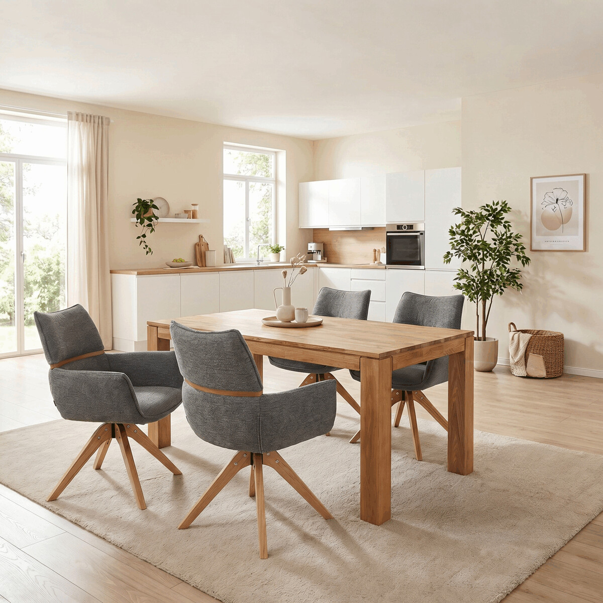 Jedálenská stolička s označením DCH-D1348 GREY2 spája pohodlie a funkčnosť v modernom dizajne. Čalúnenie je vyrobené z prémiovej sivej látky, ktorá ponúka príjemný povrch a jednoduchú údržbu. Masívne jaseňové nohy zabezpečujú stabilitu a dlhú životnosť, pričom ich prírodný odtieň dopĺňa celkový vzhľad stoličky. Vďaka otočnému mechanizmu s 360° rotáciou a vratným efektom umožňuje stolička jednoduchý pohyb a komfortné sedenie. Integrované podrúčky prispievajú k ergonómii a pohodliu počas stolovania.