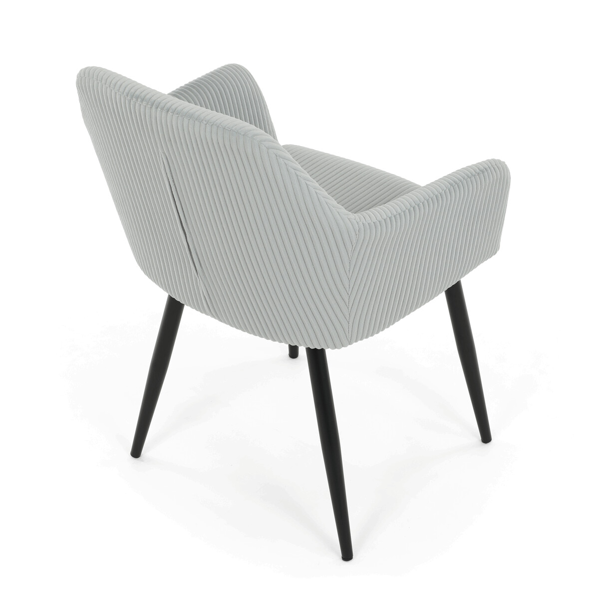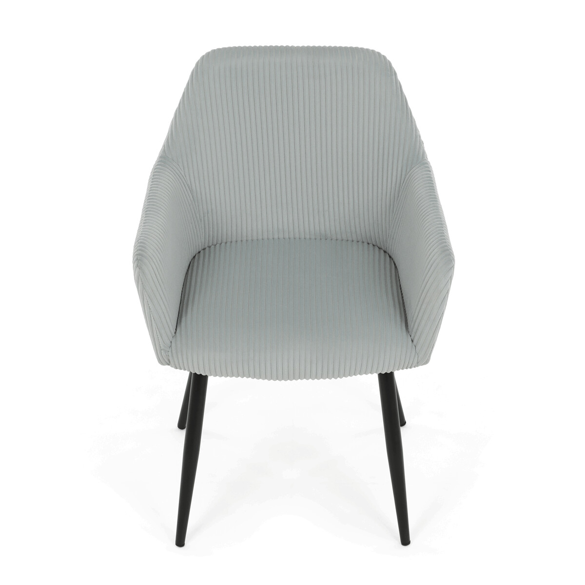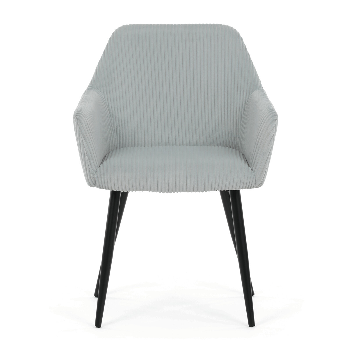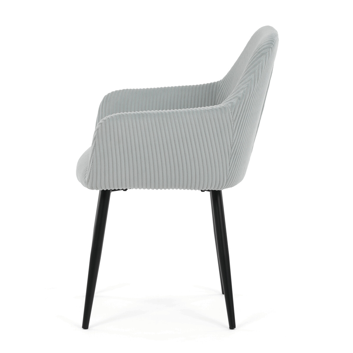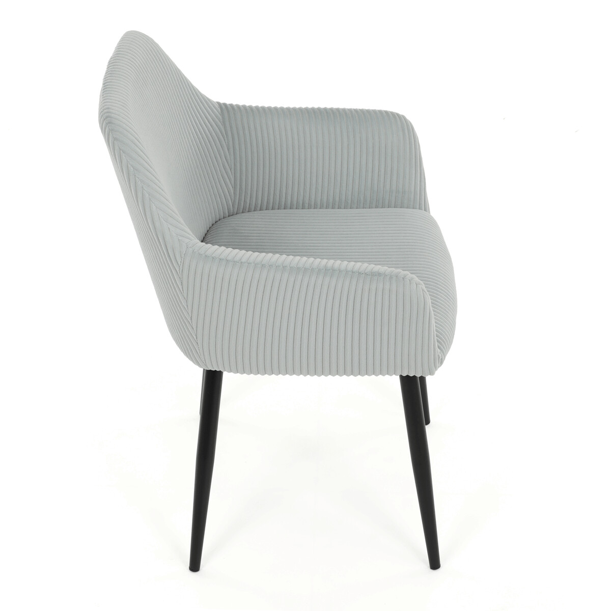 Čalúnená jedálenská stolička s podrúčkami v svetlomodrom manšestru ponúka pohodlné sedenie s príjemnou textúrou látky, ktorá je príjemná na dotyk a ľahko sa udržiava. Sedák aj operadlo sú vyplnené mäkkou penou pre zvýšenie komfortu počas dlhšieho sedenia. Stabilné kovové nohy v čiernom matnom prevedení zabezpečujú pevnú oporu a dlhú životnosť. Podrúčky sú ergonomicky tvarované a dopĺňajú celkový komfort stoličky. Dizajn spája moderný vzhľad s praktickými vlastnosťami vhodnými do jedálenských aj pracovných priestorov.