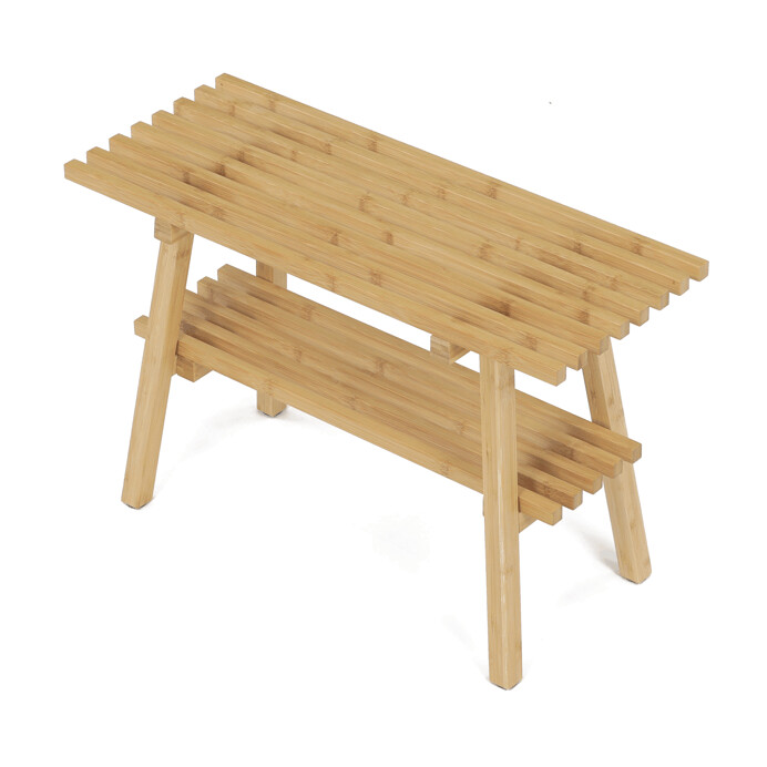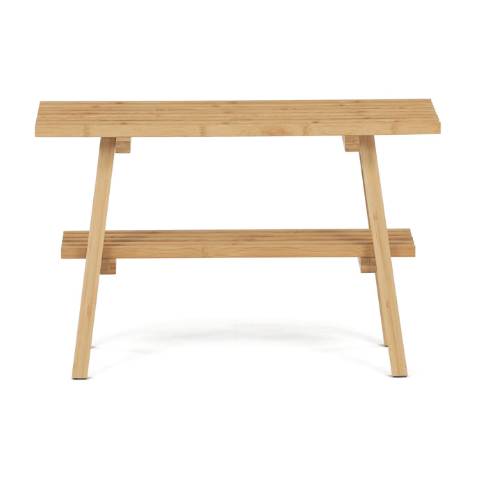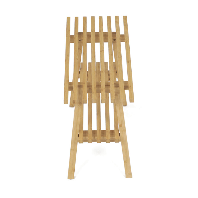 Botník z masívneho bambusu v prírodnom odtieni ponúka praktické a estetické riešenie na usporiadanie obuvi v domácnosti. Jeho jednoduchý dizajn s jednou policou tvorenou vodorovnými latkami umožňuje efektívne vetranie a rýchle schnutie obuvi. Stabilné nohy mierne rozšírené do strán zabezpečujú pevnosť a bezpečnosť pri používaní. Povrchová úprava bambusu podčiarkuje jeho prírodný vzhľad a zároveň uľahčuje údržbu. Vďaka kompaktným rozmerom je botník vhodný do predsiení aj menších priestorov.