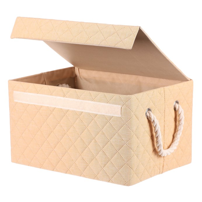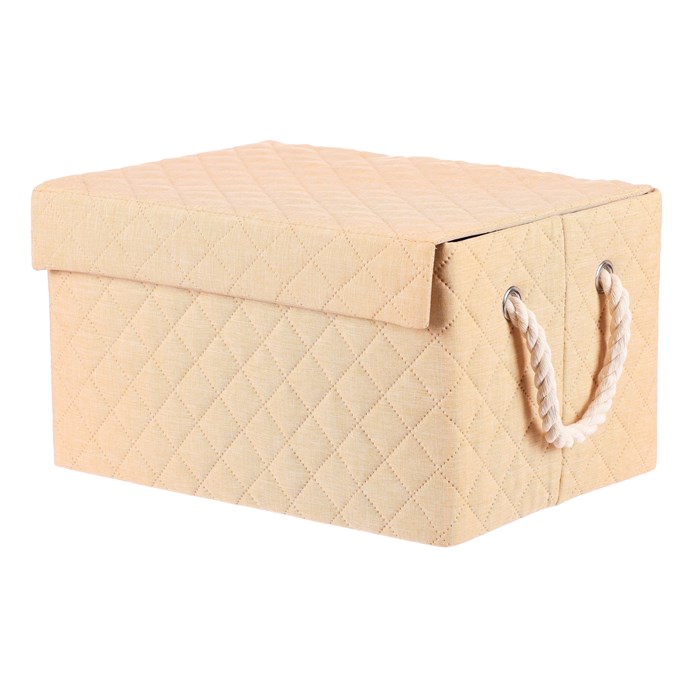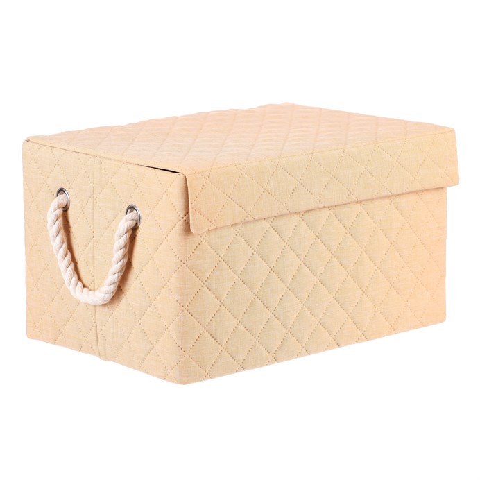 DT3003 BEI Kôš látkový - krabica s uchami a vekom, nízky, béžový