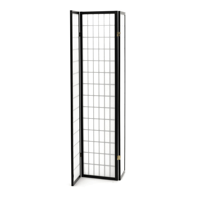 Trojdielny paraván je vyrobený z masívneho smrekového dreva s povrchovou úpravou v čiernom matnom laku, ktorý zabezpečuje kvalitné spracovanie a dlhú životnosť. Výplň tvorí biela netkaná textília, ktorá prepúšťa svetlo a zároveň poskytuje dostatočné súkromie. Vďaka trom otočným dielom umožňuje flexibilné nastavenie uhla a jednoduché prispôsobenie priestoru. Paraván je vhodný na oddelenie miestností, vytvorenie súkromných zón alebo ako dekoratívny prvok interiéru. Jeho rozmery a pevná konštrukcia zaručujú stabilitu pri použití v rôznych typoch priestorov.