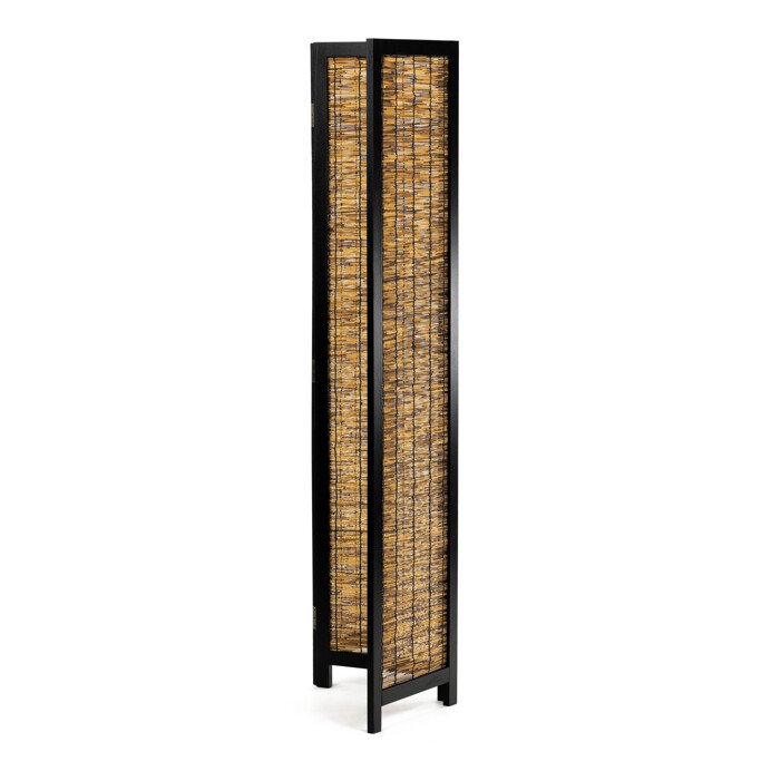 Trojdielny paraván z masívneho smrekového dreva v čiernom prevedení ponúka praktické riešenie na rozdelenie priestoru alebo vytvorenie súkromia v interiéri. Pevný rám je doplnený výplňou z tenkých smrekových lamiel, ktoré dodávajú paravánu prírodný a zároveň moderný vzhľad. Vďaka trom otočným dielom je možné paraván ľahko prispôsobiť rôznym priestorovým podmienkam a usporiadaniam. Povrchová úprava čiernym lakom chráni drevo a zároveň zvýrazňuje jeho štruktúru. Paraván je vhodný do obývacích izieb, kancelárií alebo komerčných priestorov, kde oceníte kombináciu funkčnosti a estetického prevedenia. Rozmer jedného dielu je 40x171 cm.