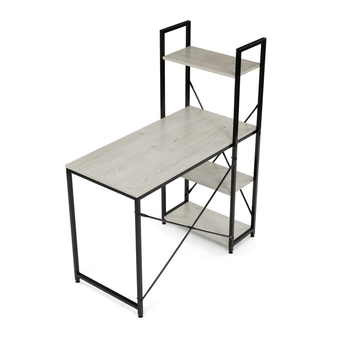 Pracovný stôl značky Autronic v industriálnom štýle je skvelou voľbou pre moderné kancelárie aj domáce pracovne. Kombinácia bieleného duba a čiernej kovovej konštrukcie vytvára atraktívny a odolný design. Stôl ponúka praktický úložný priestor vďaka štyrom prídavným policam, ktoré poskytujú dostatok miesta pre knihy, dokumenty alebo dekorácie. Matná povrchová úprava dosky z MDF zaistí ľahkú údržbu a elegantný vzhľad. Tento funkčný a štýlový kus nábytku sa skvele hodí do interiéru, kde oceníte praktickosť a moderný vzhľad. Rozmer police: 48 x 24,5 cm. Celková výška s policou je 122 cm.
