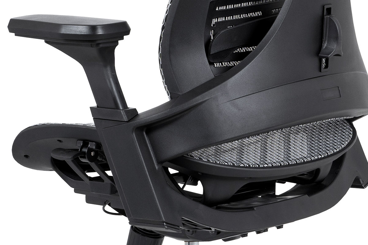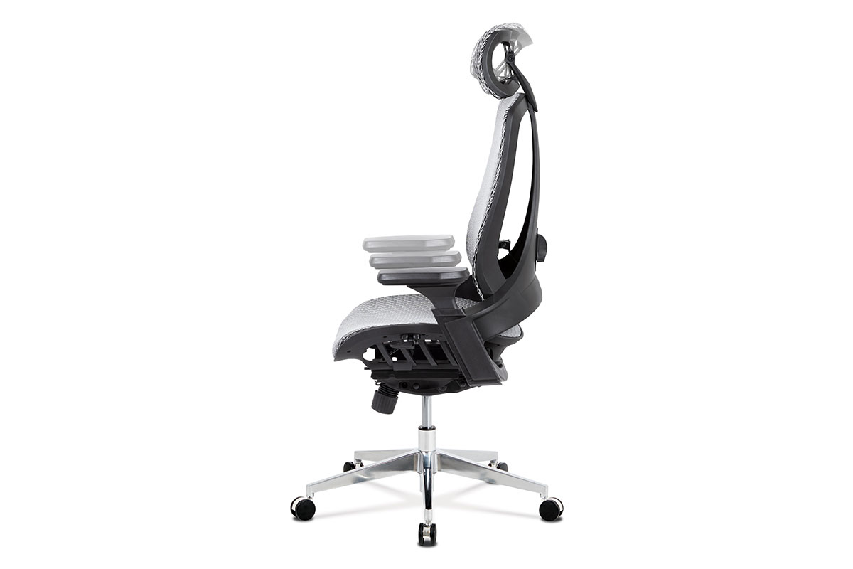 Kancelárska stolička očalúnenie sieťovinou MESH v šedej farbe. Táto stolička je jedinečná svojím lankovým mechanizmom, ktorý zaisťuje vysoký komfort pri užívaní, a to vďaka možnosti nastavenia sedadla (dopredu - dozadu), možnosti aretácie operadla v akejkoľvek polohe a nastavenie výšky. Nastaviteľné podrúčky, bedrová opierka s možnosťou nastavenia podľa užívateľa a opierka hlavy sú tiež veľkou výhodou.