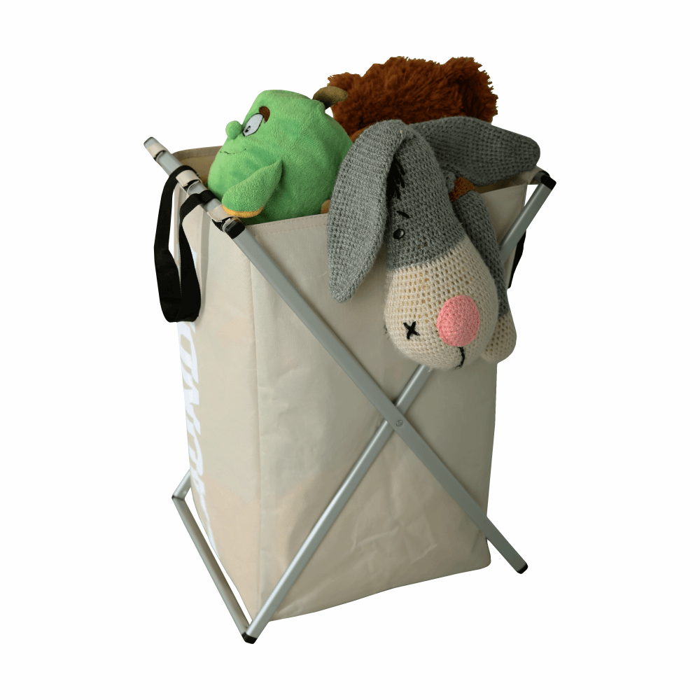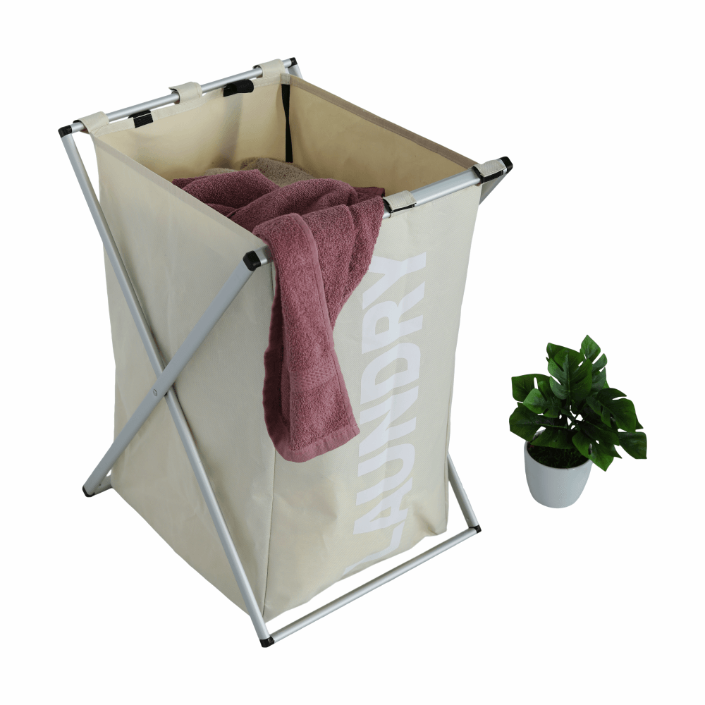 Látkový kôš na bielizeň. Materiál:látka/kov Farba: sivobéžová Rozmery (ŠxHxV): 39,5x37x58 cm Nosnosť: 15 kg