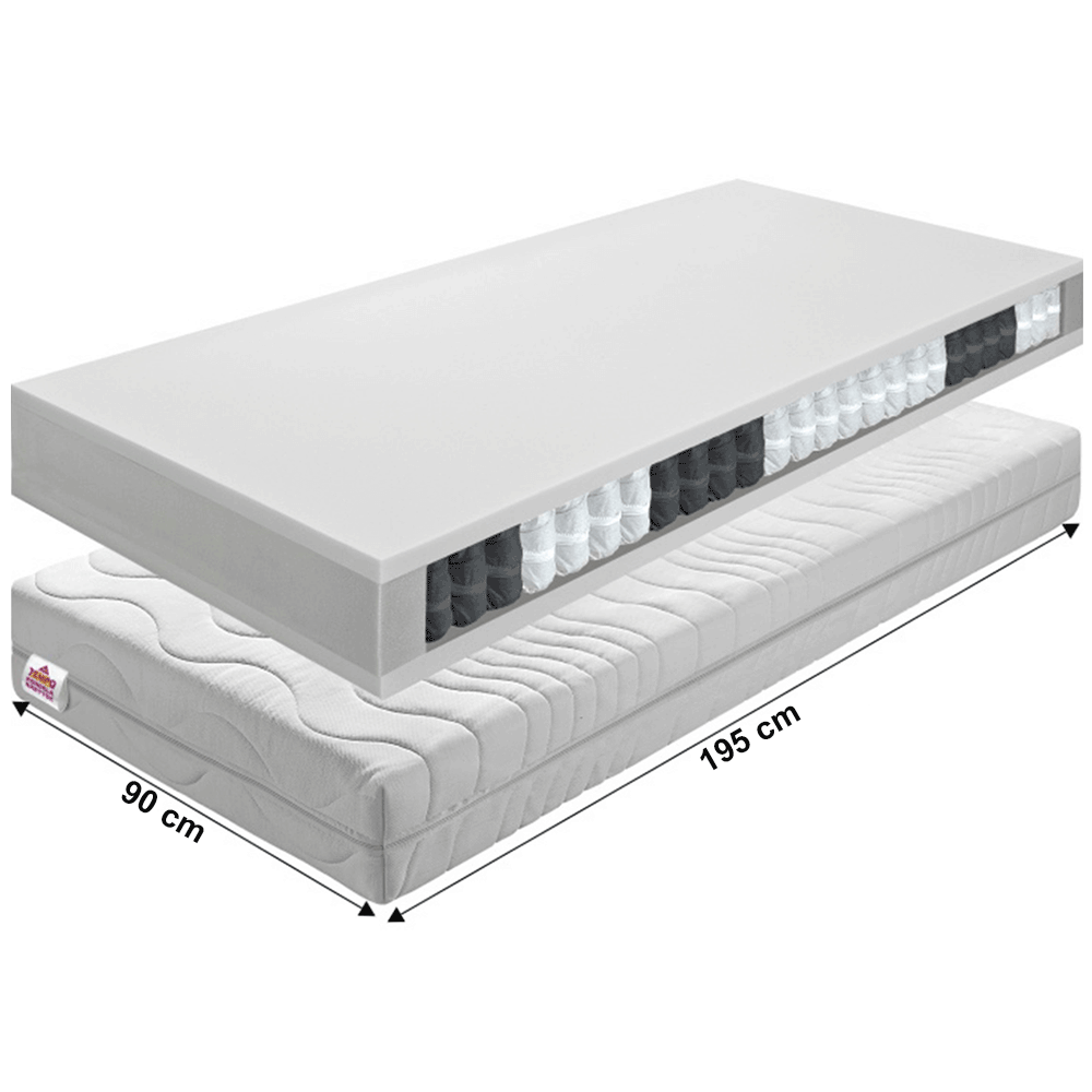 Materiál: taštičkové pružiny/polyuretánová pena/antialergický poťah/plsť