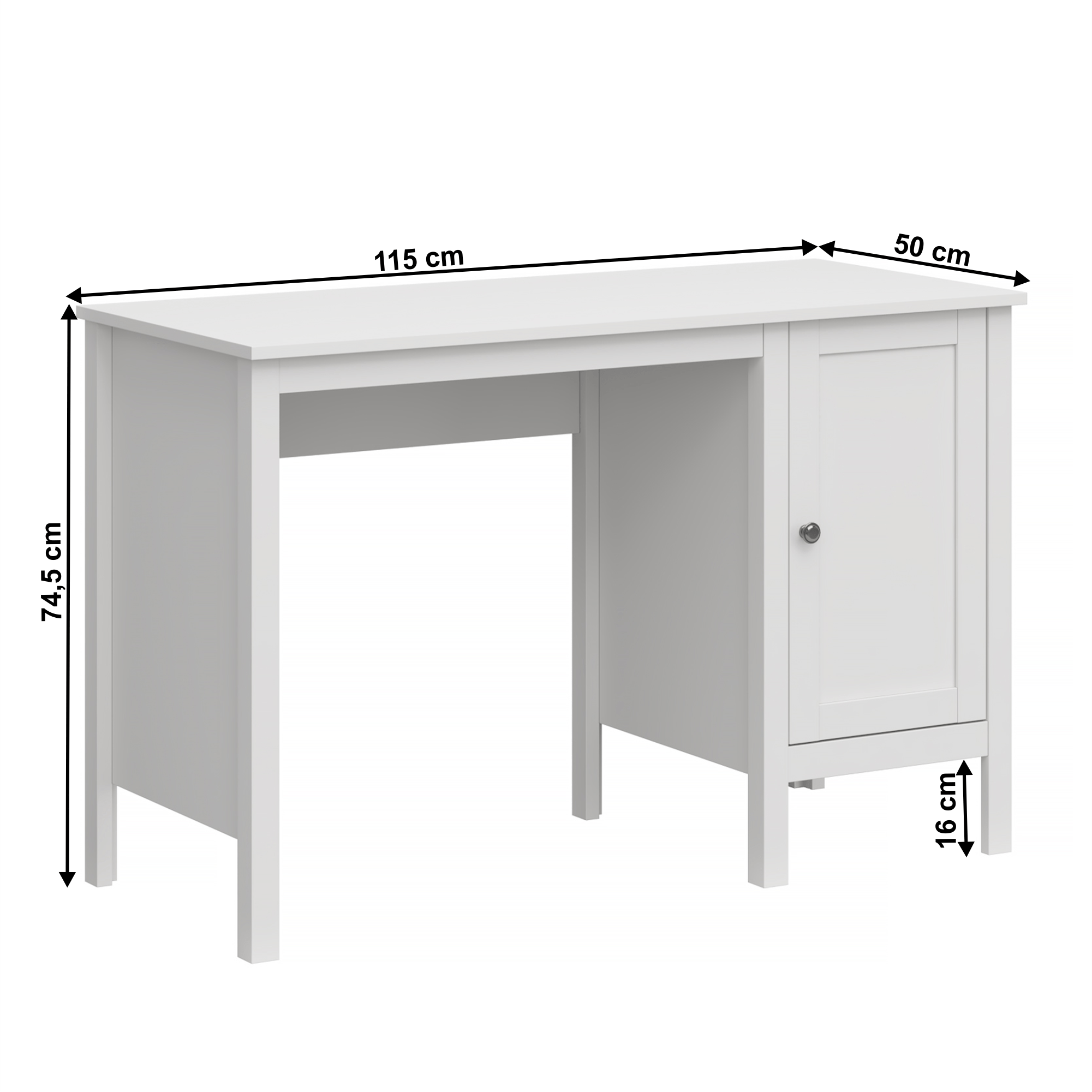 Materiál:DTD laminovaná/ABS hrany/MDF Farba:biela Rozmery (ŠxHxV): 115x50x74,5 cm Výška nožičiek: 16 cm Skrinka Polica MDF dvierka Dodávané v demonte