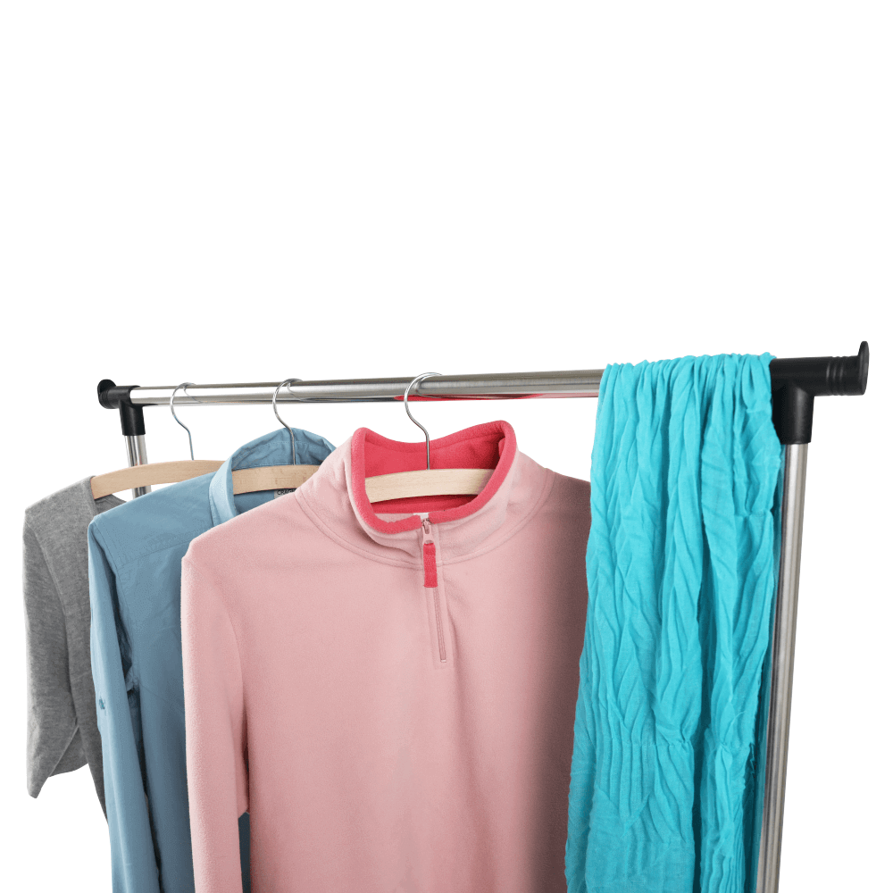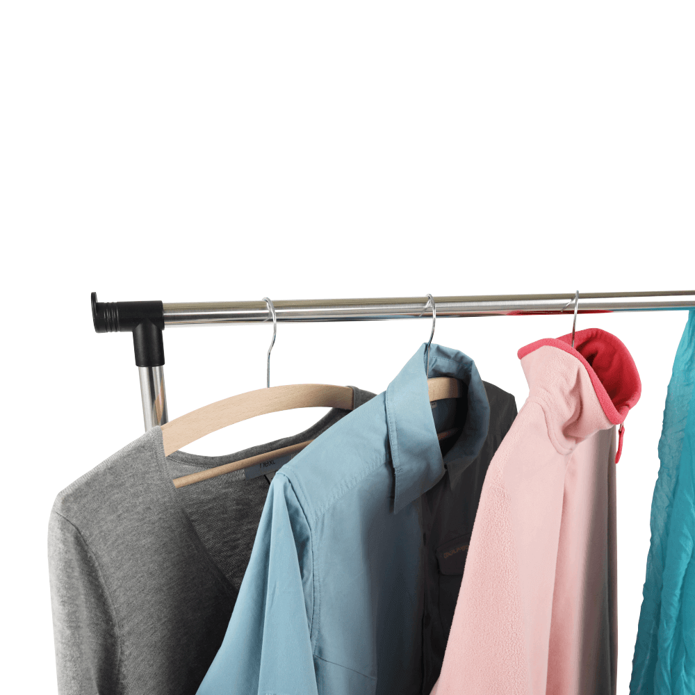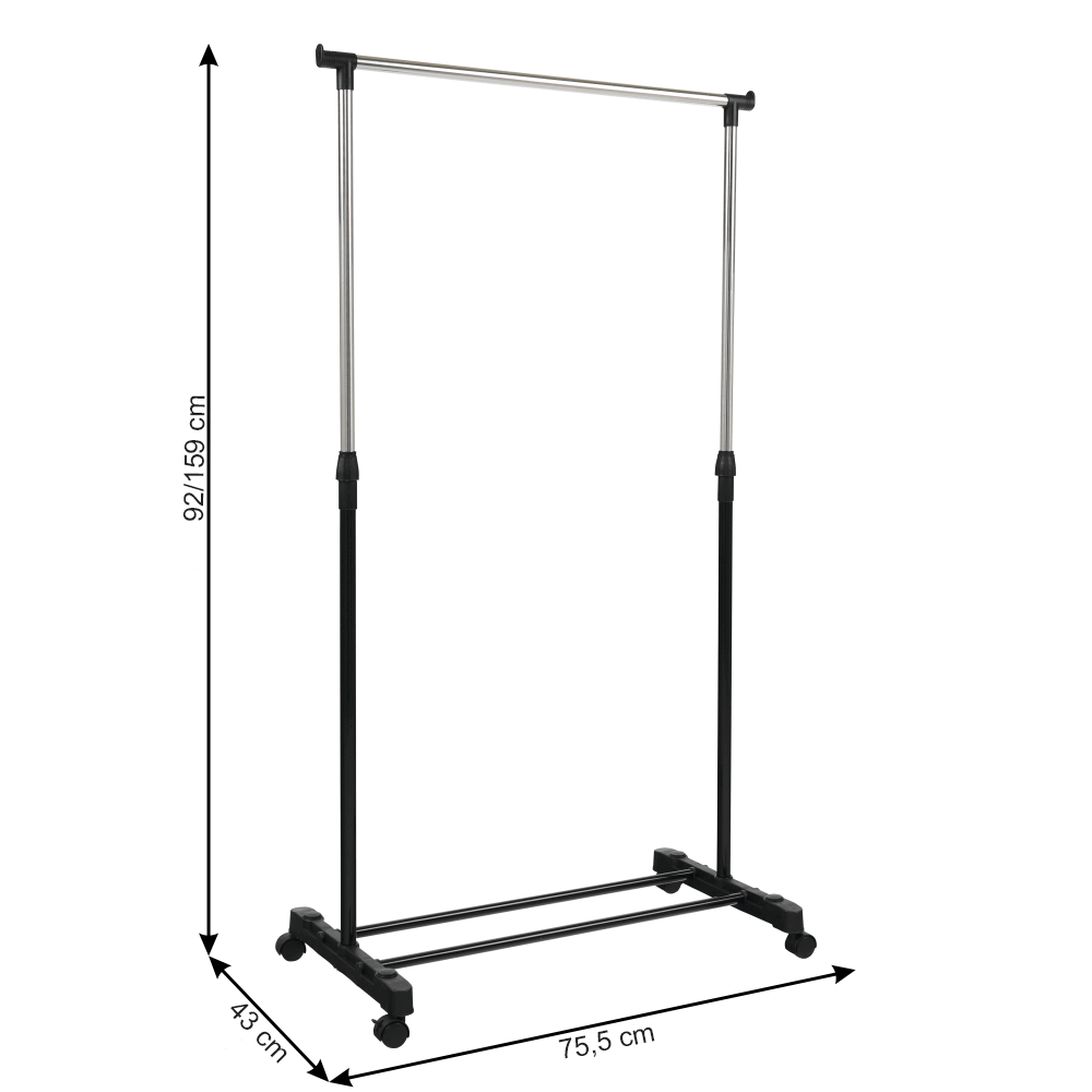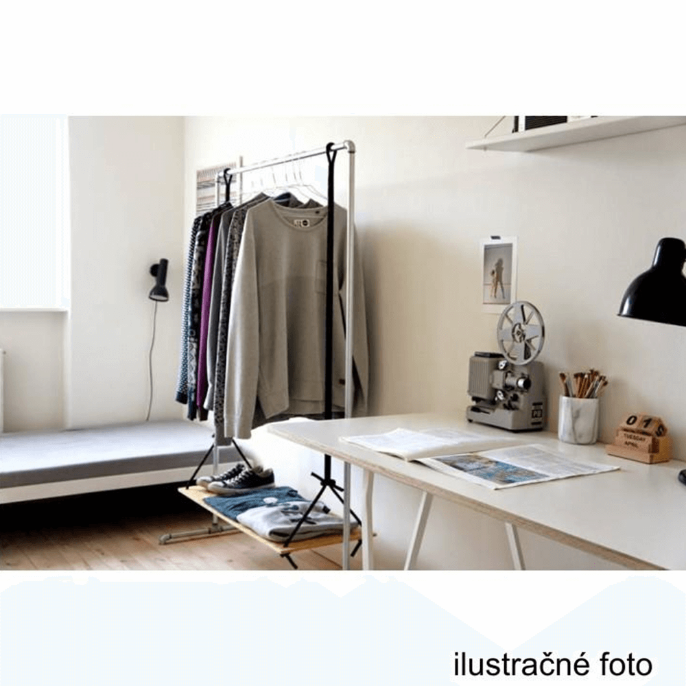 Pojazdný vešiak s kolieskami a jednou závesnou výškovo nastaviteľnou tyčou
