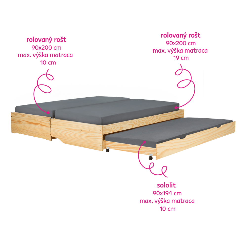 Maximálna výška matraca na výsuvnú prístelku: 10 cm
