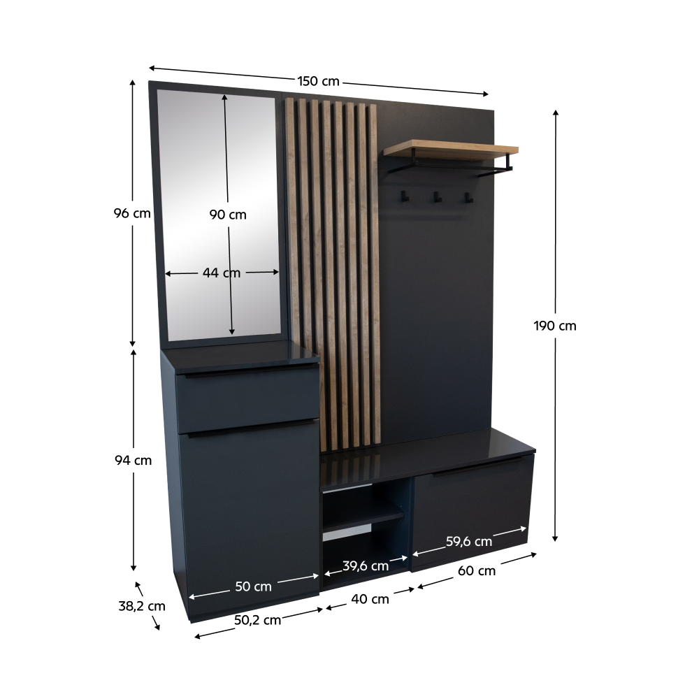 Rozmery (ŠxHxV): 150x38,2x190 cm