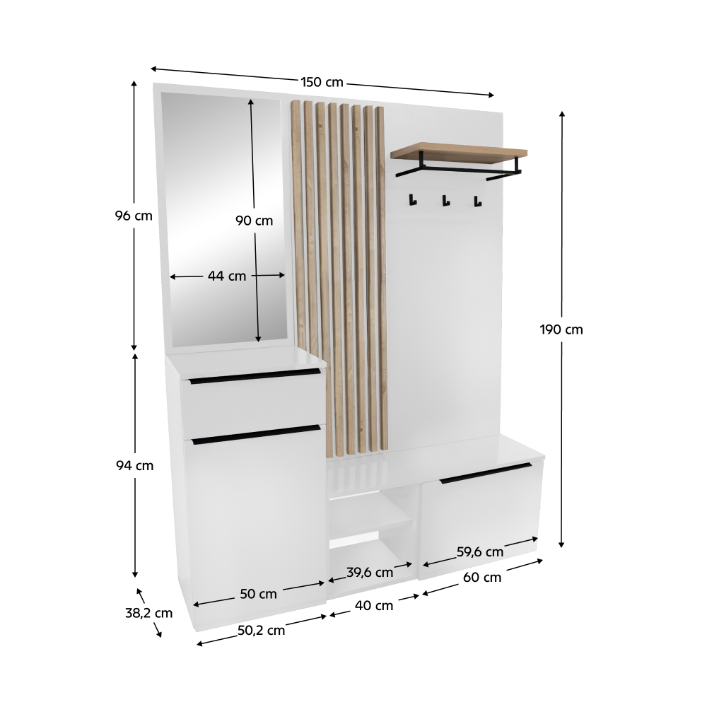 Rozmery (ŠxHxV): 150x38,2x190 cm