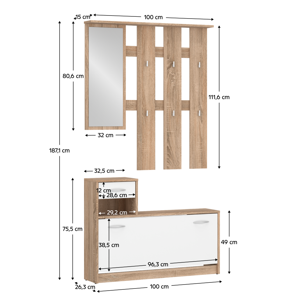 Rozmery (ŠxHxV): 100x26,3x187,1 cm