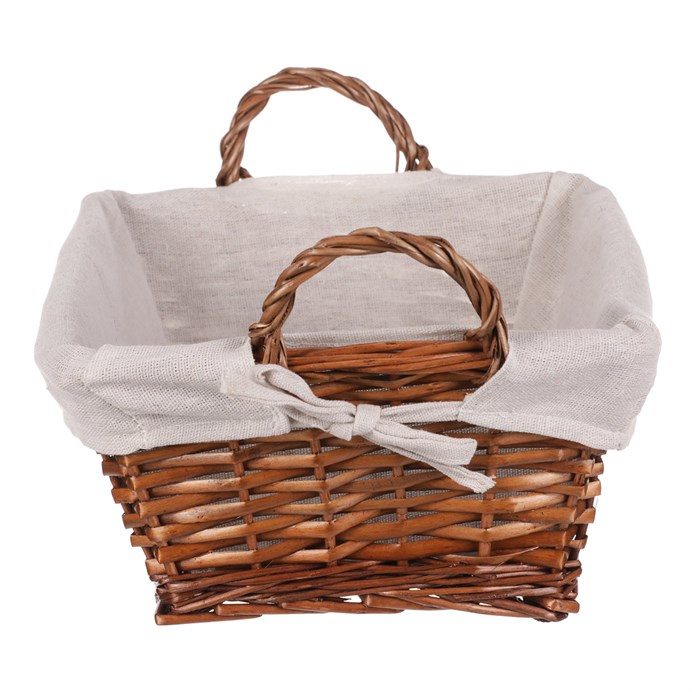 PRN2005 BR Kôš prútený - hranatý, s látkou, farba hnedá