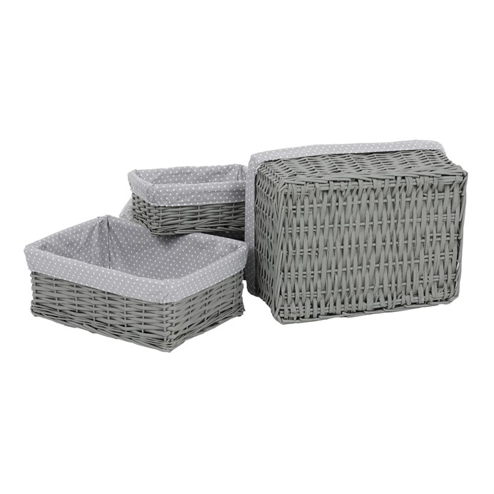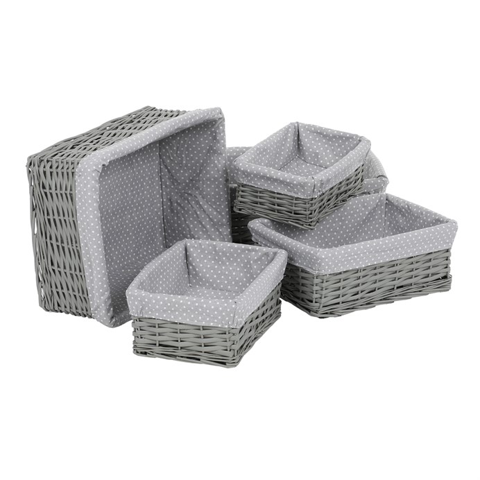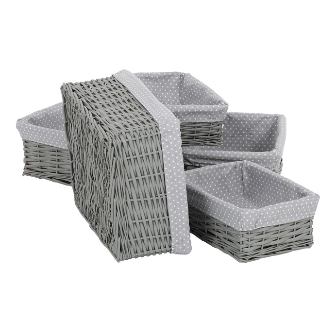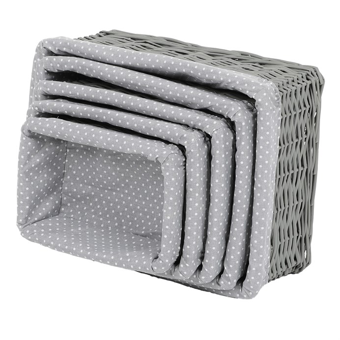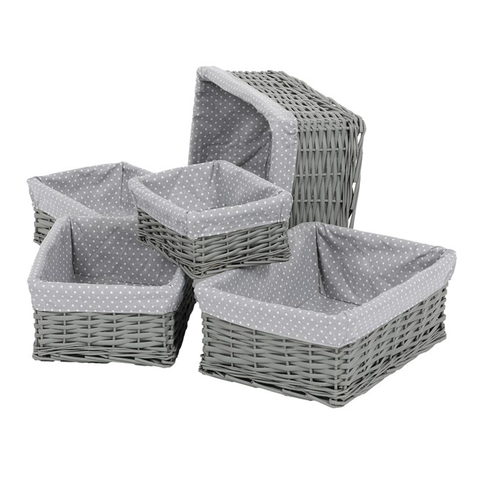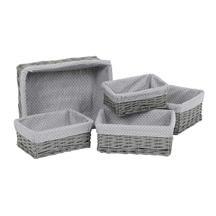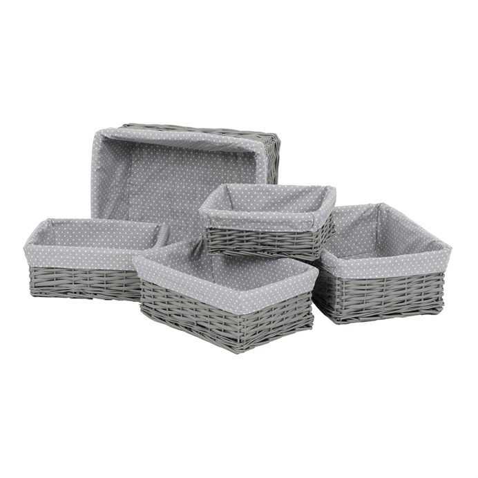 PRN2013 GREY Kôš regálový - prútený, šedý s látkou, cena za sadu 5 ks
