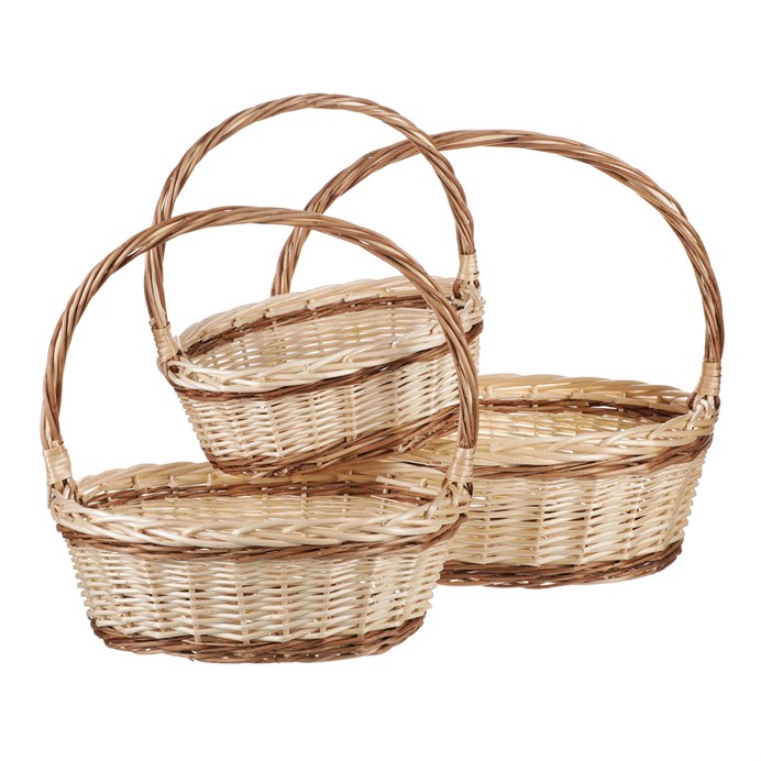 PRN2018 NAT Kôš prútený - oválny, s uchom, prírodný, cena za sadu 3 ks