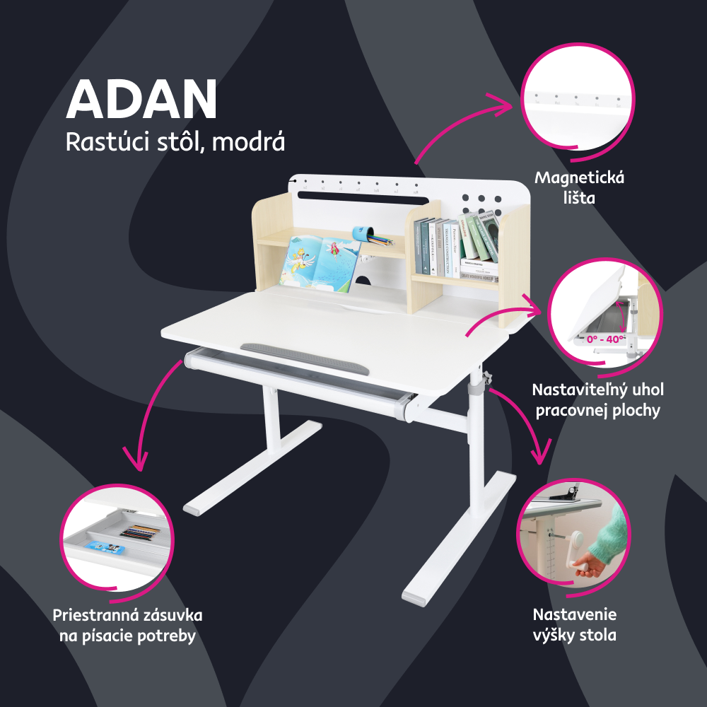 Hĺbka polohovacej časti pracovnej dosky: 40 cm