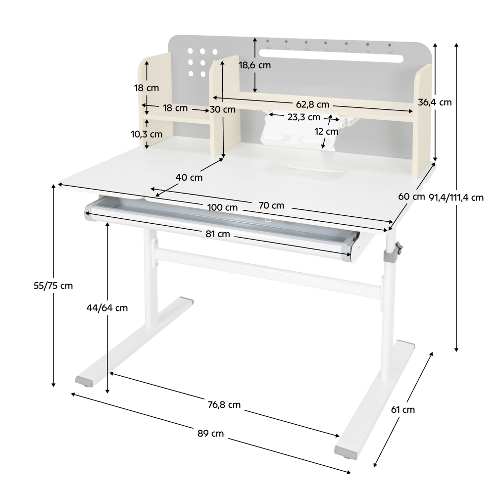 Výška stola a sklon pracovnej plochy sa nastavuje pomocou plynového piestu a páky