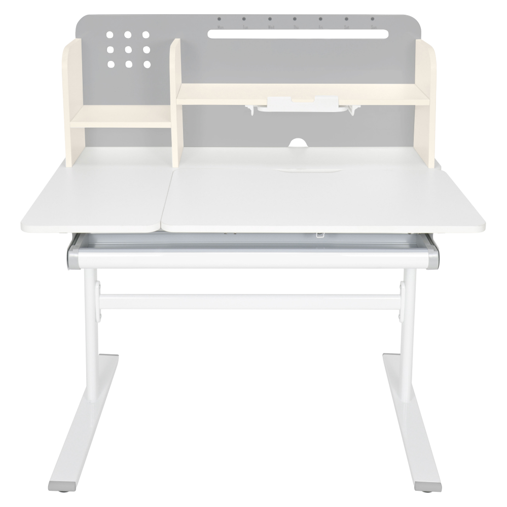 Zadný panel obsahuje police, držiak na knihy a otvor na vedenie káblov