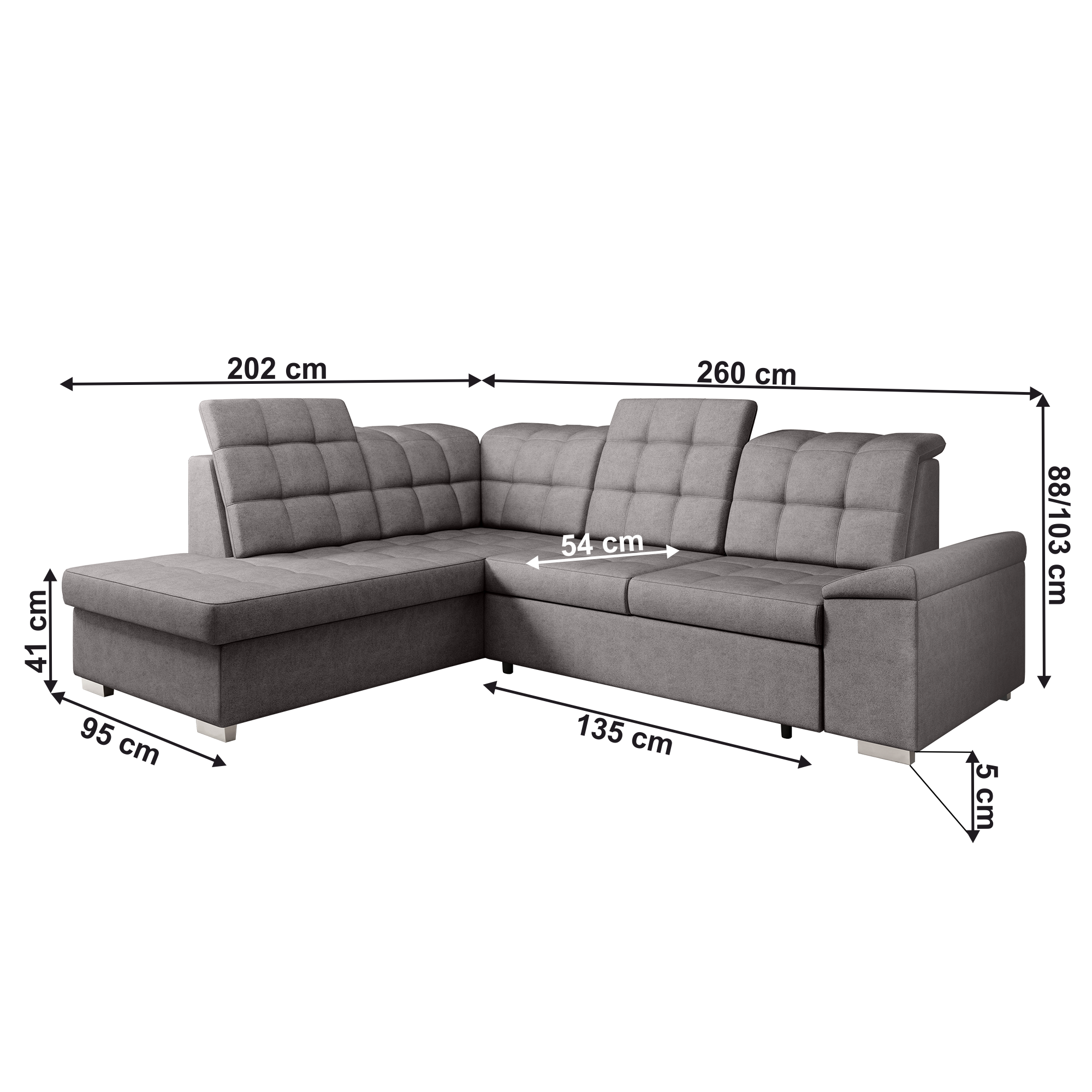 Rozmery (ŠxHxV): 260x202x88/103 cm