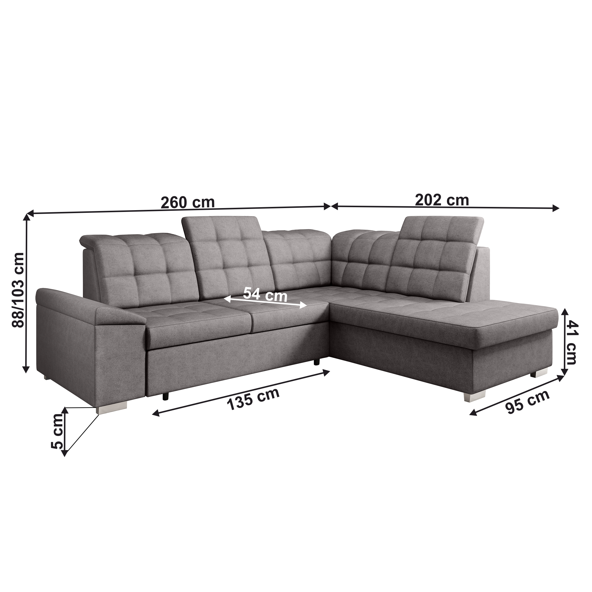 Rozmery (ŠxHxV): 260x202x88/103 cm