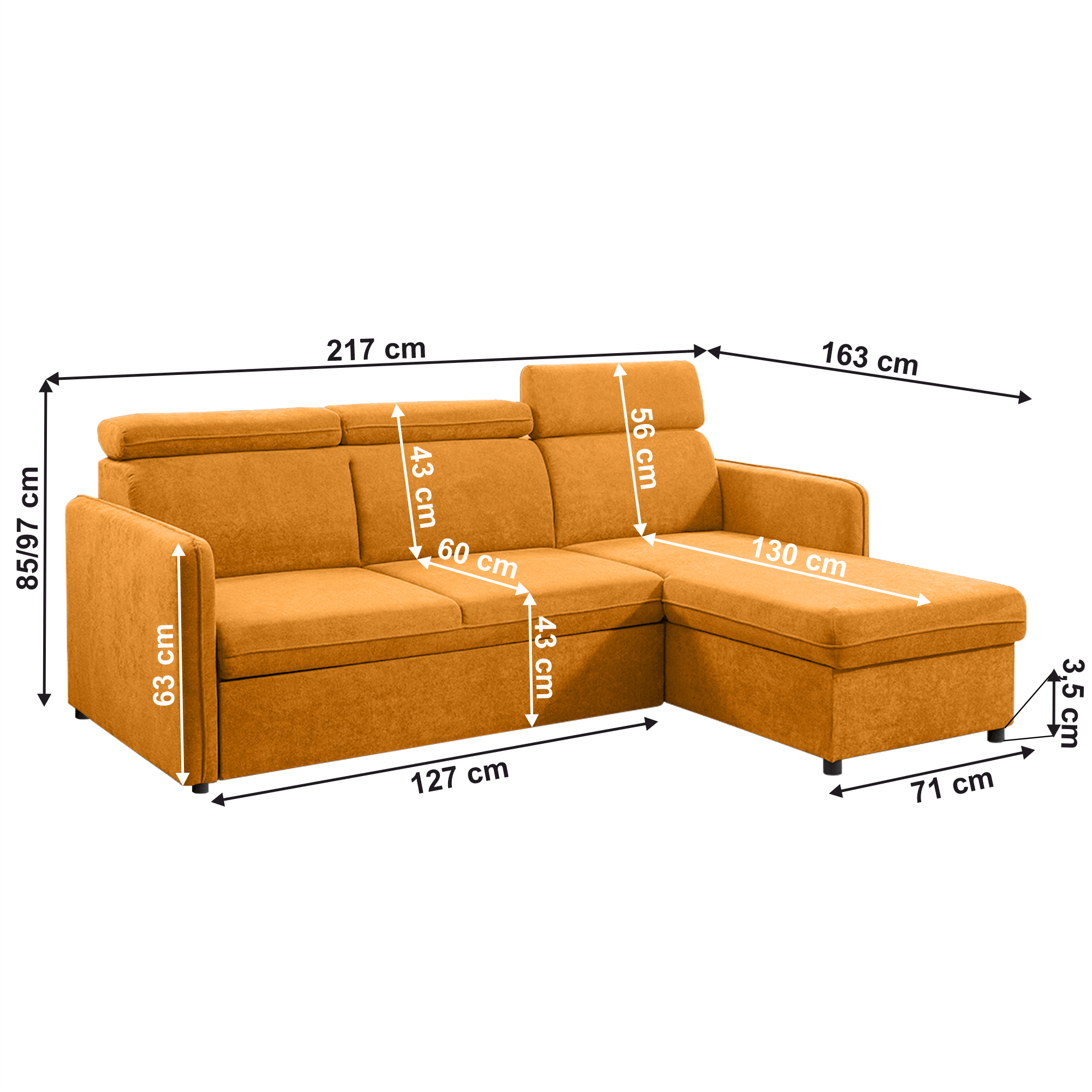 Rozmery (ŠxHxV): 217x163x85/97 cm