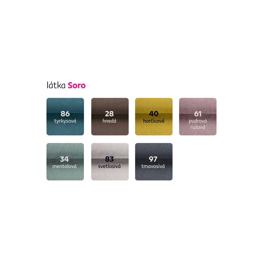 Možnosť objednania v 7 farebných odtieňoch látky Soro v cene 1.689 Eur s dodacou lehotou 6-8 týždňov. Pri individuálnej objednávke je potrebné zaplatiť 20% zálohu z danej sumy. Po uhradení zálohy bude Vaša požiadavka zadaná do výroby.