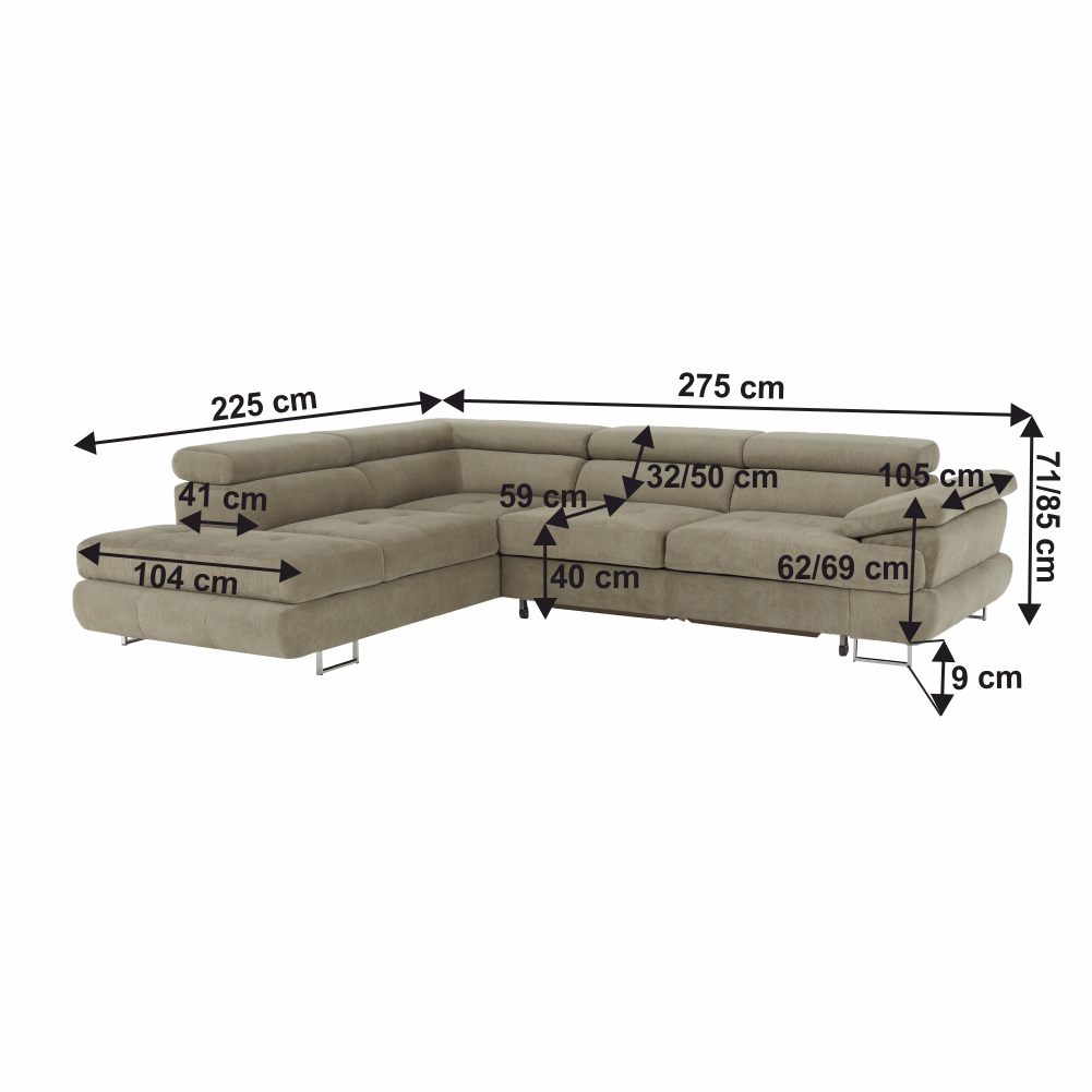 Rozmery (ŠxHxV): 275x225x71/85 cm.