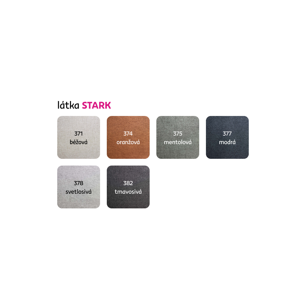 Možnosť objednania v 6 farebných odtieňoch látky Stark s dodacou lehotou 6-8 týždňov. Pri individuálnej objednávke je potrebné zaplatiť 20% zálohu z danej sumy. Po uhradení zálohy bude Vaša požiadavka zadaná do výroby.