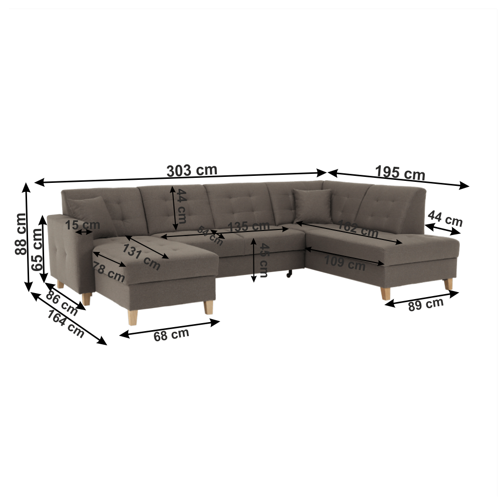 Rozmery (ŠxHxV): 303x164/195x88 cm