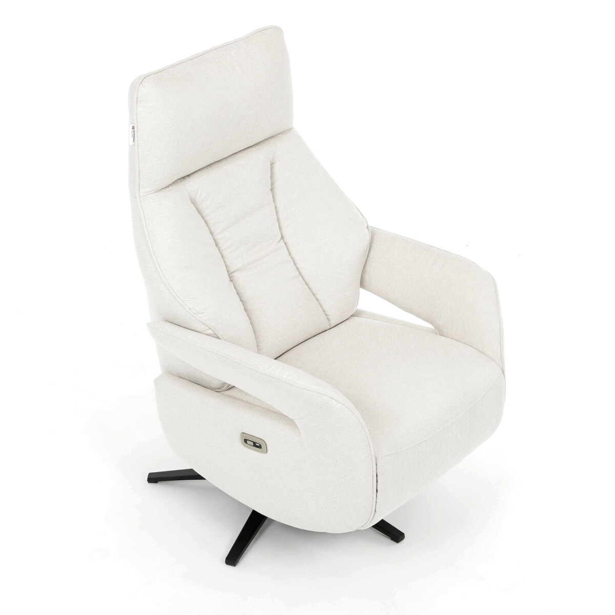 Polohovacie kreslo s elektrickým ovládaním a jedným motorom ponúka komfortnú relaxáciu s možnosťou presného nastavenia polohy. Poťah je z príjemnej krémovej látky, ktorá zabezpečuje mäkký dotyk a jednoduchú údržbu. Pevná kovová podnož s piatimi ramenami umožňuje stabilný otočný pohyb o 360°, čo zvyšuje flexibilitu používania. Kreslo je vybavené polstrovanými podrúčkami, ktoré dopĺňajú ergonómiu a pohodlie pri sedení. Elektrický mechanizmus umožňuje plynulé a tiché polohovanie, čo ocenia používatelia hľadajúci moderné a praktické riešenie na oddych.